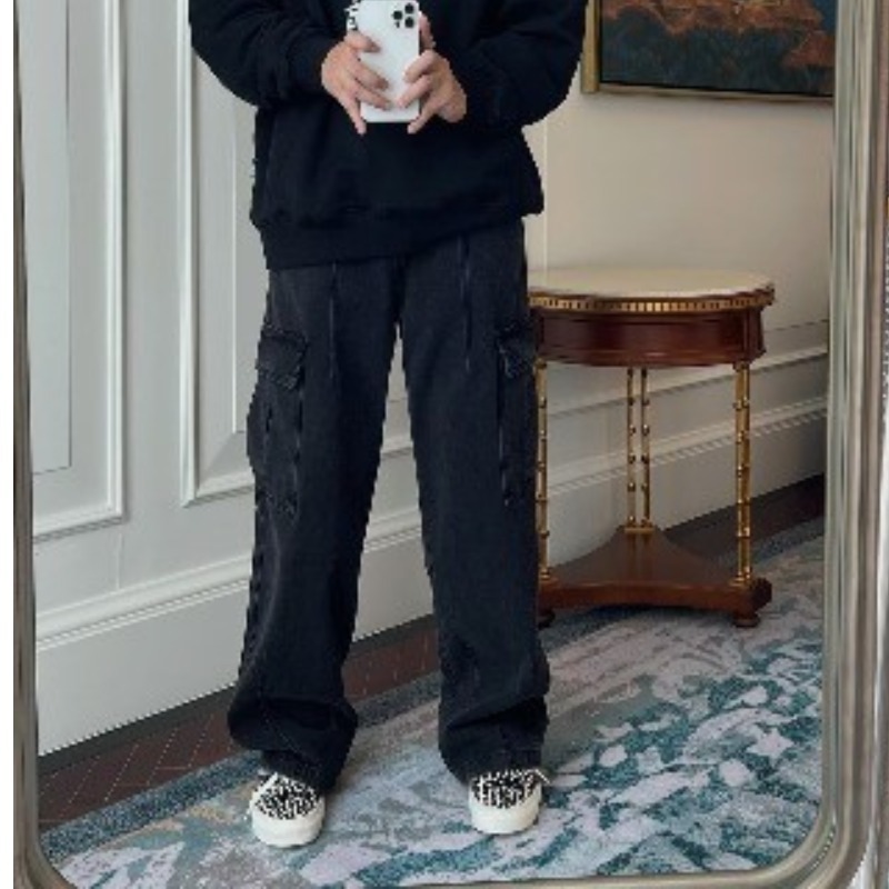 2025 Four Seasons 새로운 미국 패션 레트로 카고 팬츠 느슨한 캐주얼 루즈 스트레이트 청바지 남성용 트렌디