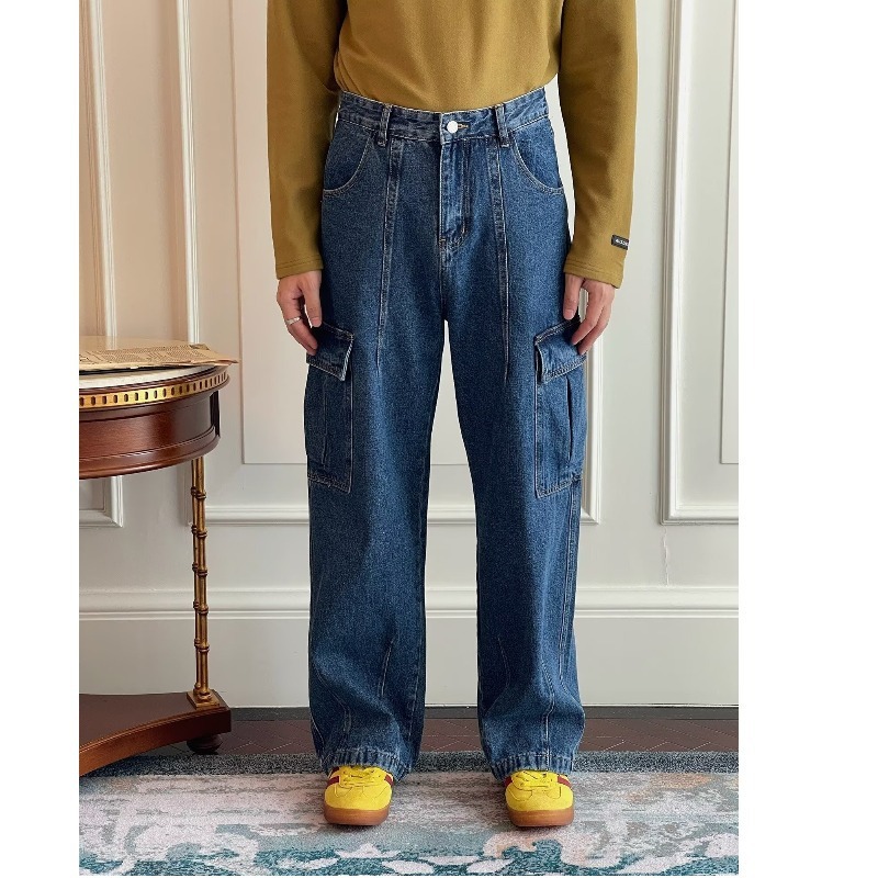 2025 Four Seasons 새로운 미국 패션 레트로 카고 팬츠 느슨한 캐주얼 루즈 스트레이트 청바지 남성용 트렌디스토어 가기