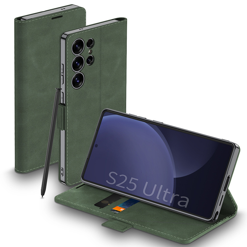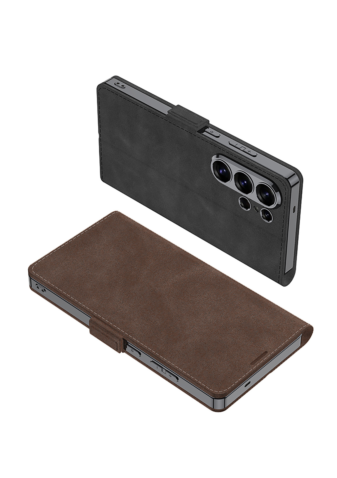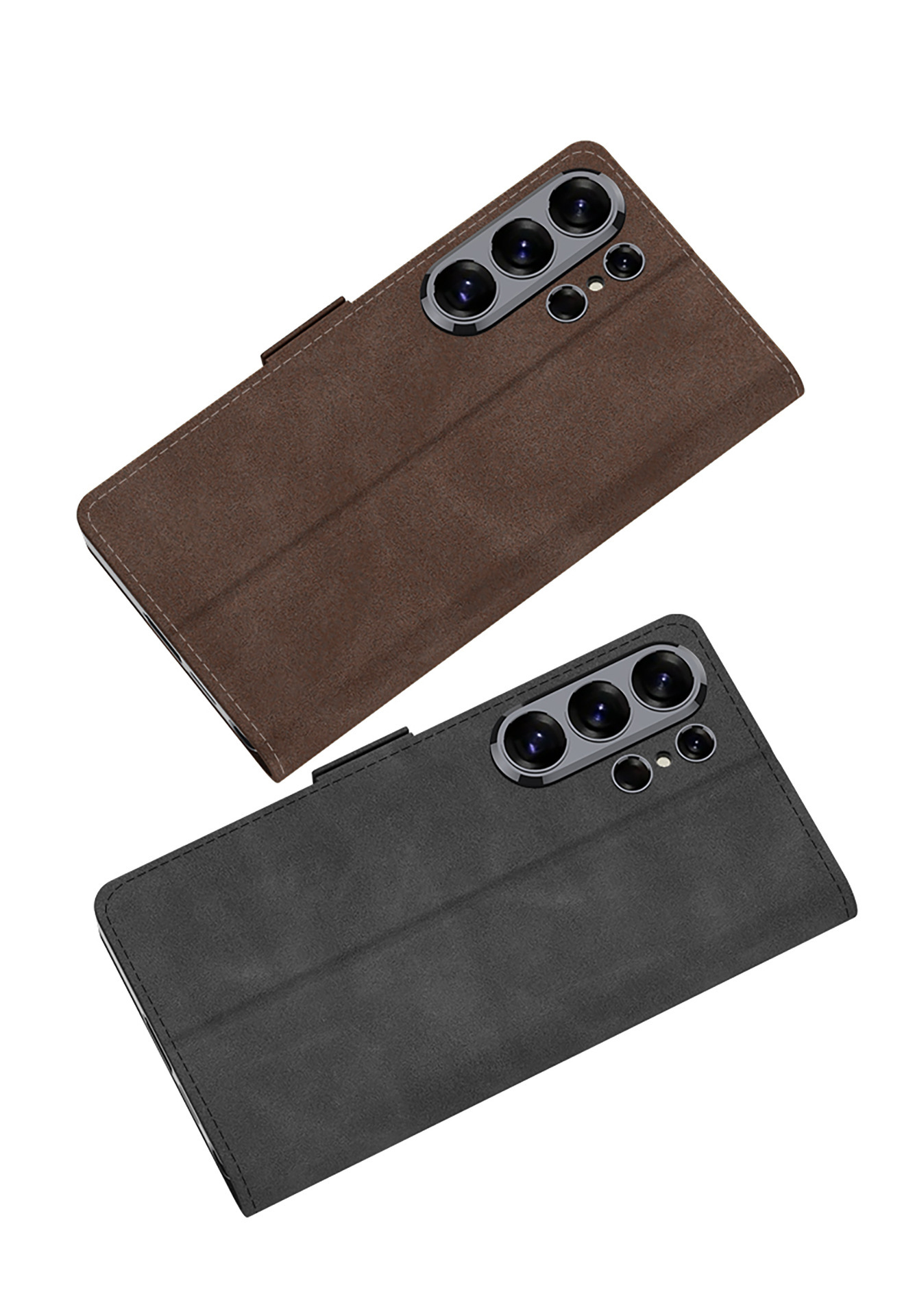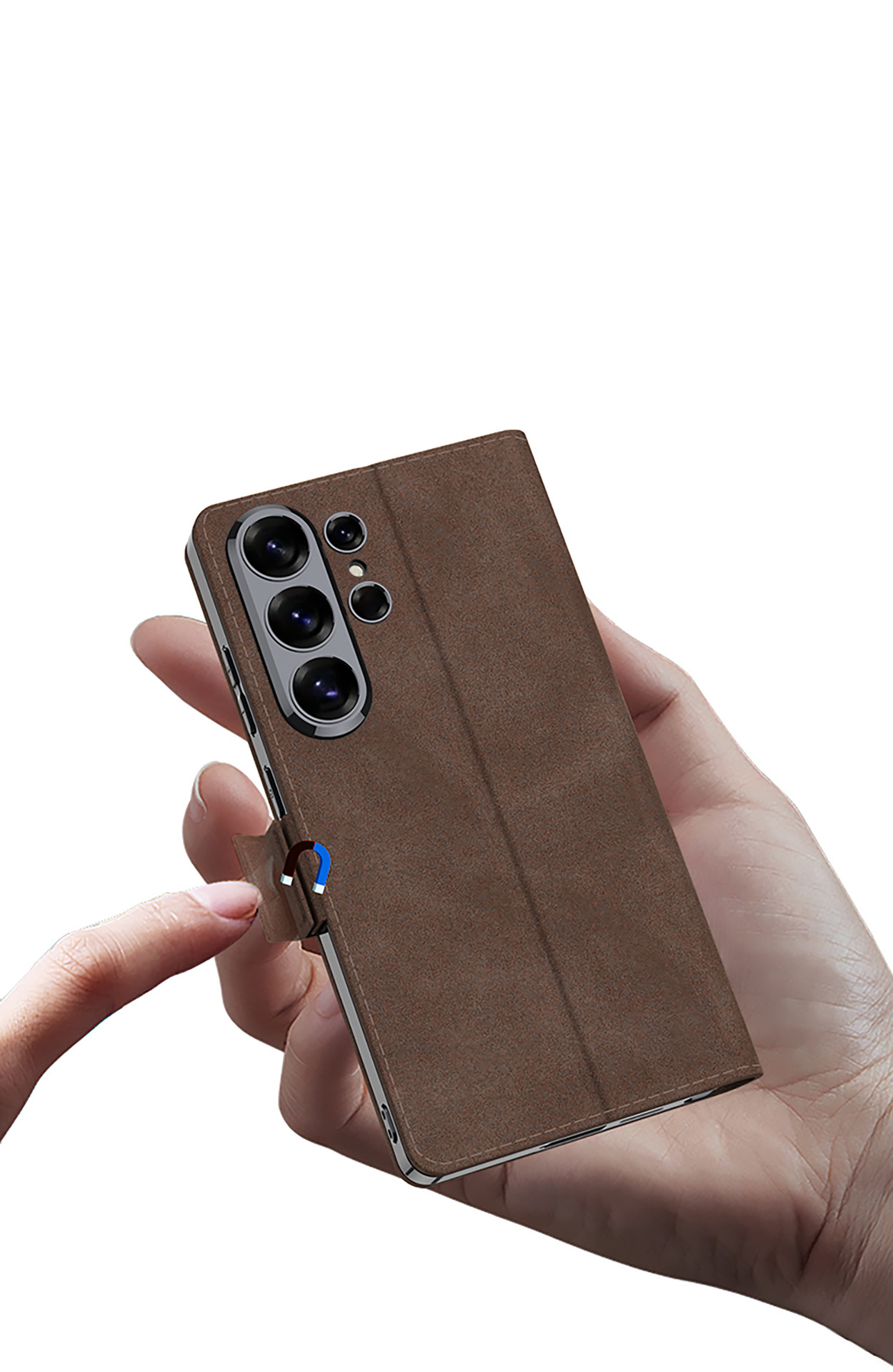 삼성 S25울트라 폰 케이스 전기 도금 플립 커버 가죽 커버 명함 프로스트 가죽 낙하 방지 보호 커버