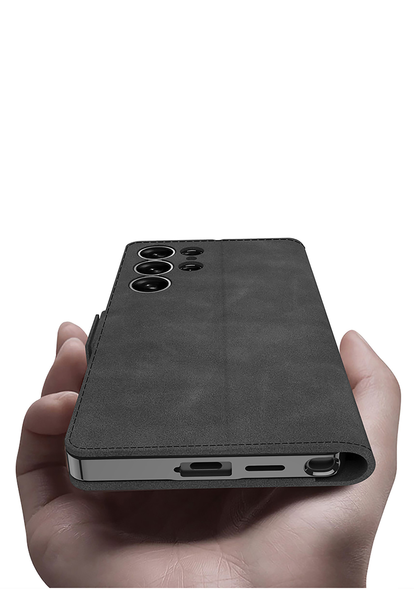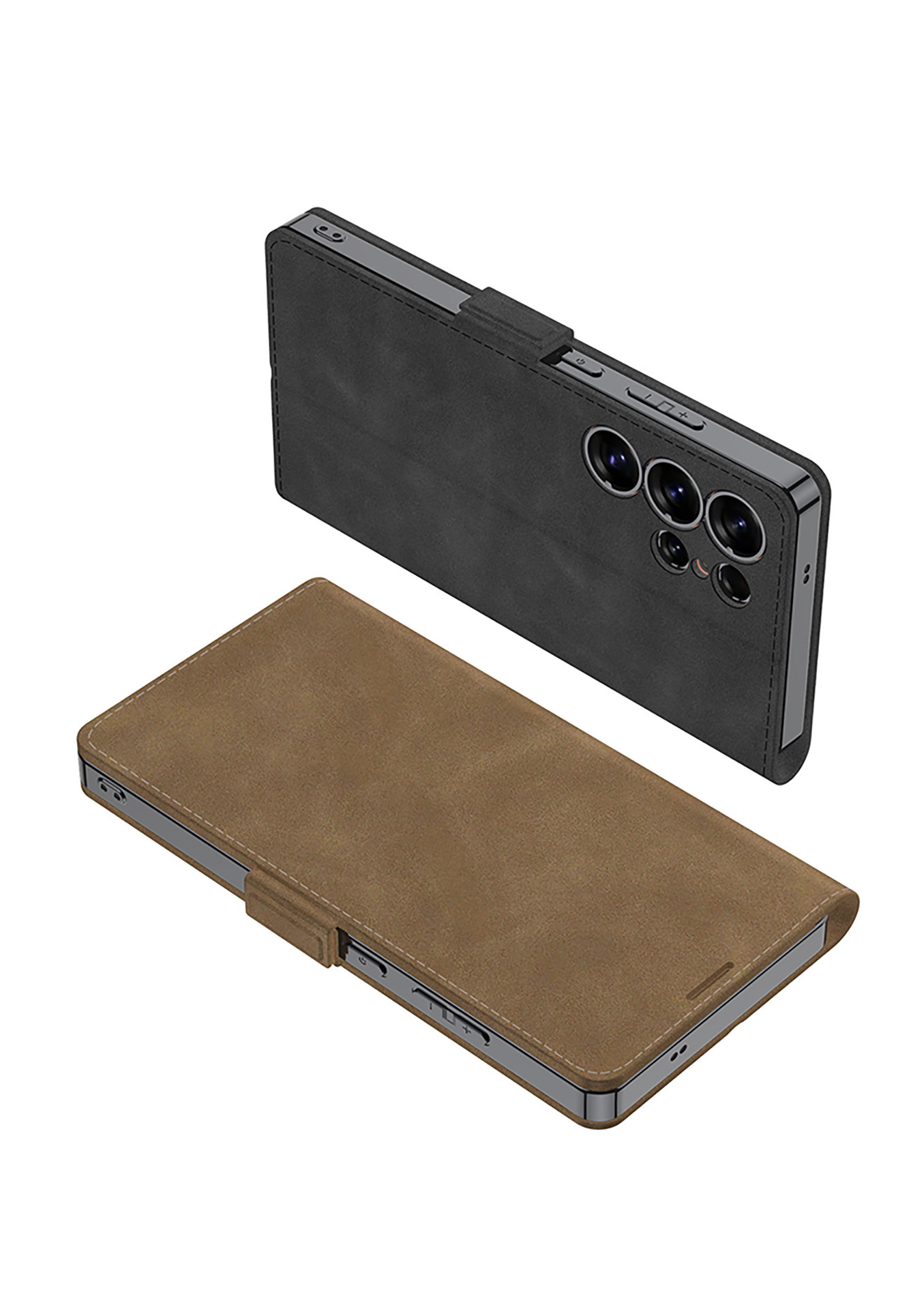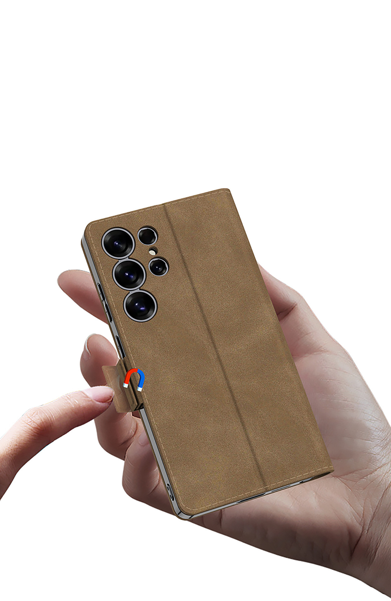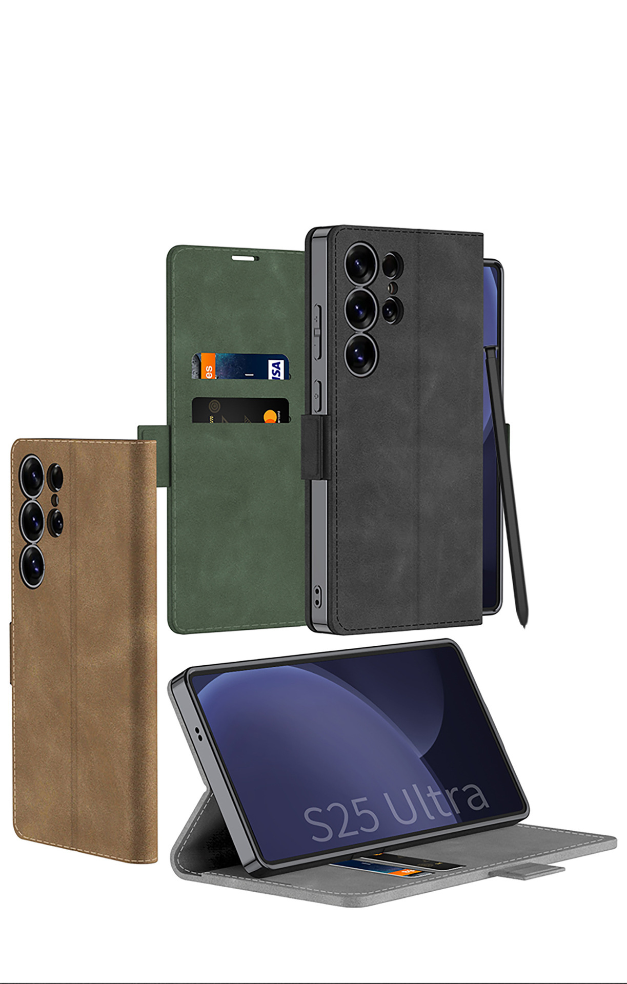 삼성 S25울트라 폰 케이스 전기 도금 플립 커버 가죽 커버 명함 프로스트 가죽 낙하 방지 보호 커버