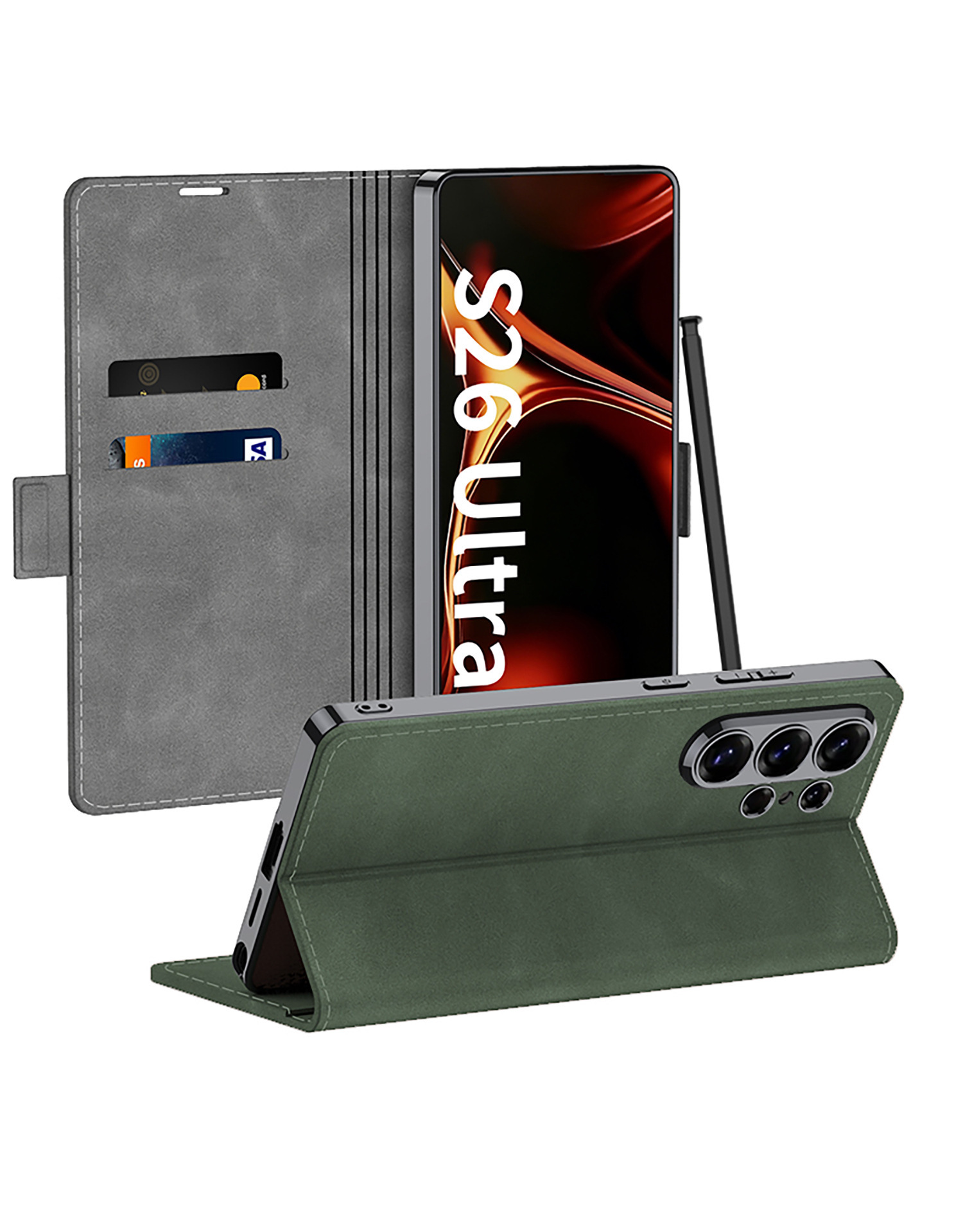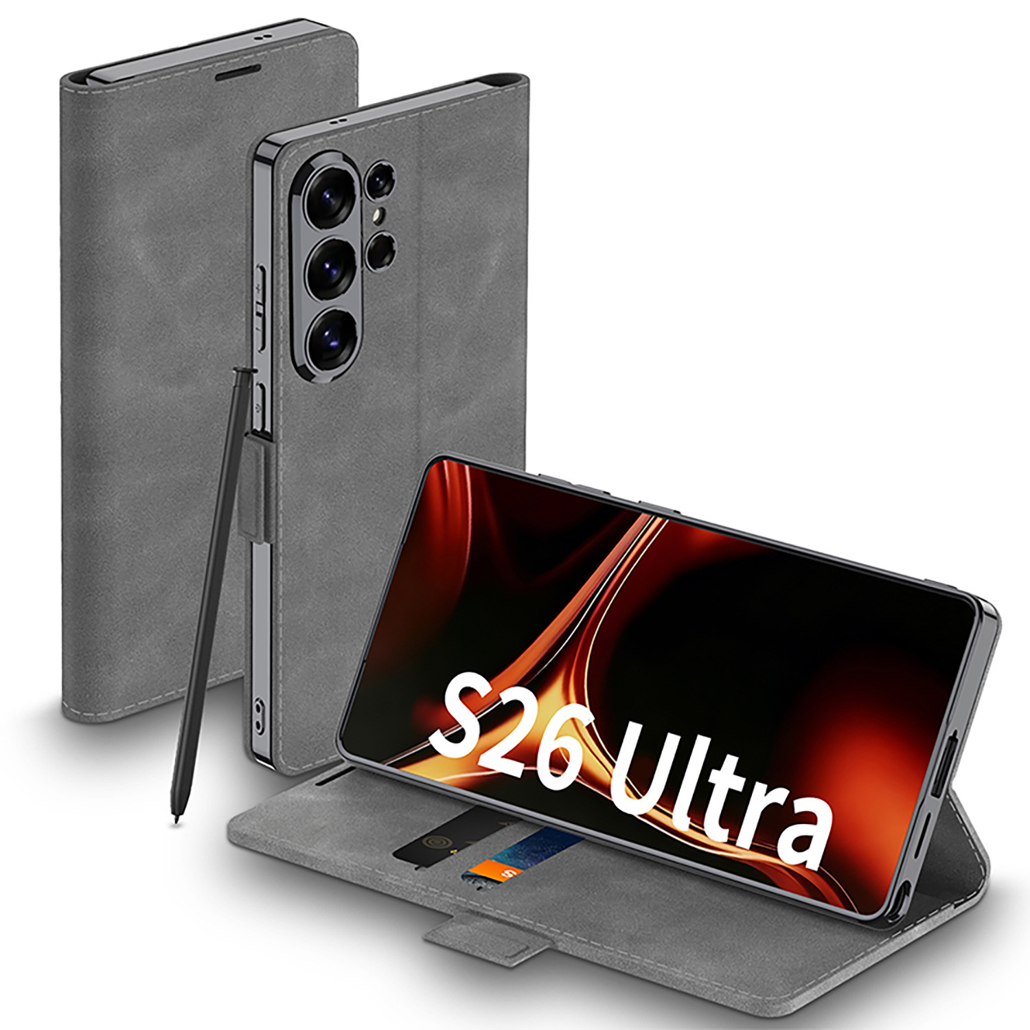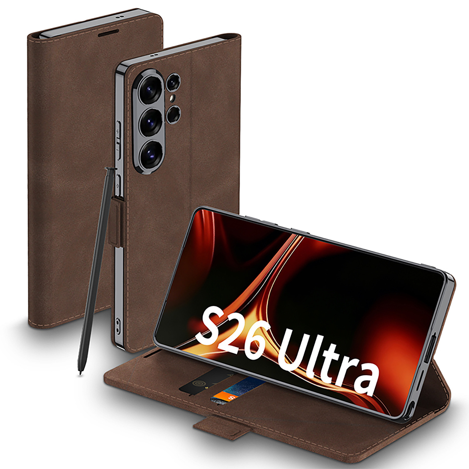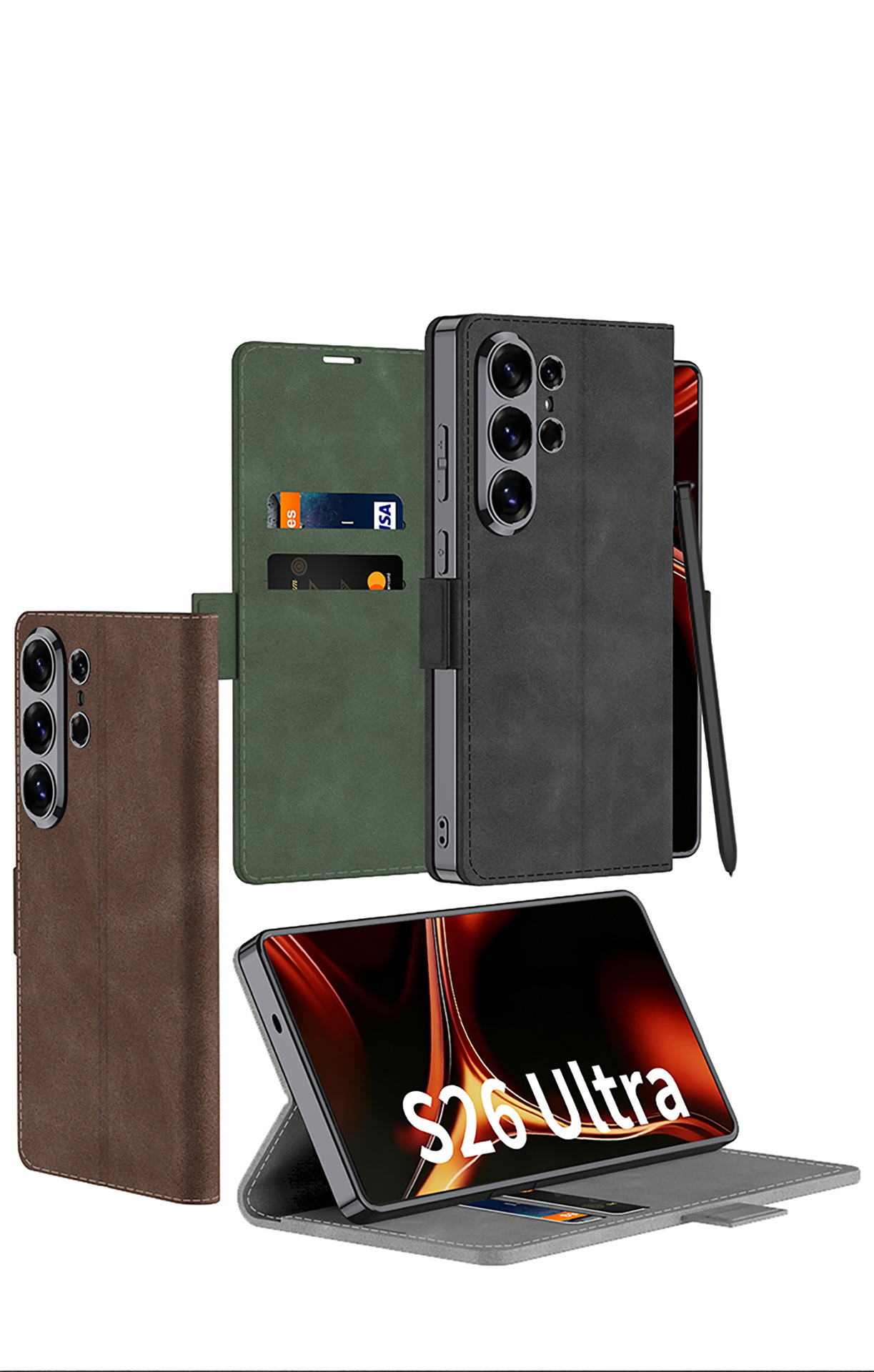 삼성 S25울트라 폰 케이스 전기 도금 플립 커버 가죽 커버 명함 프로스트 가죽 낙하 방지 보호 커버