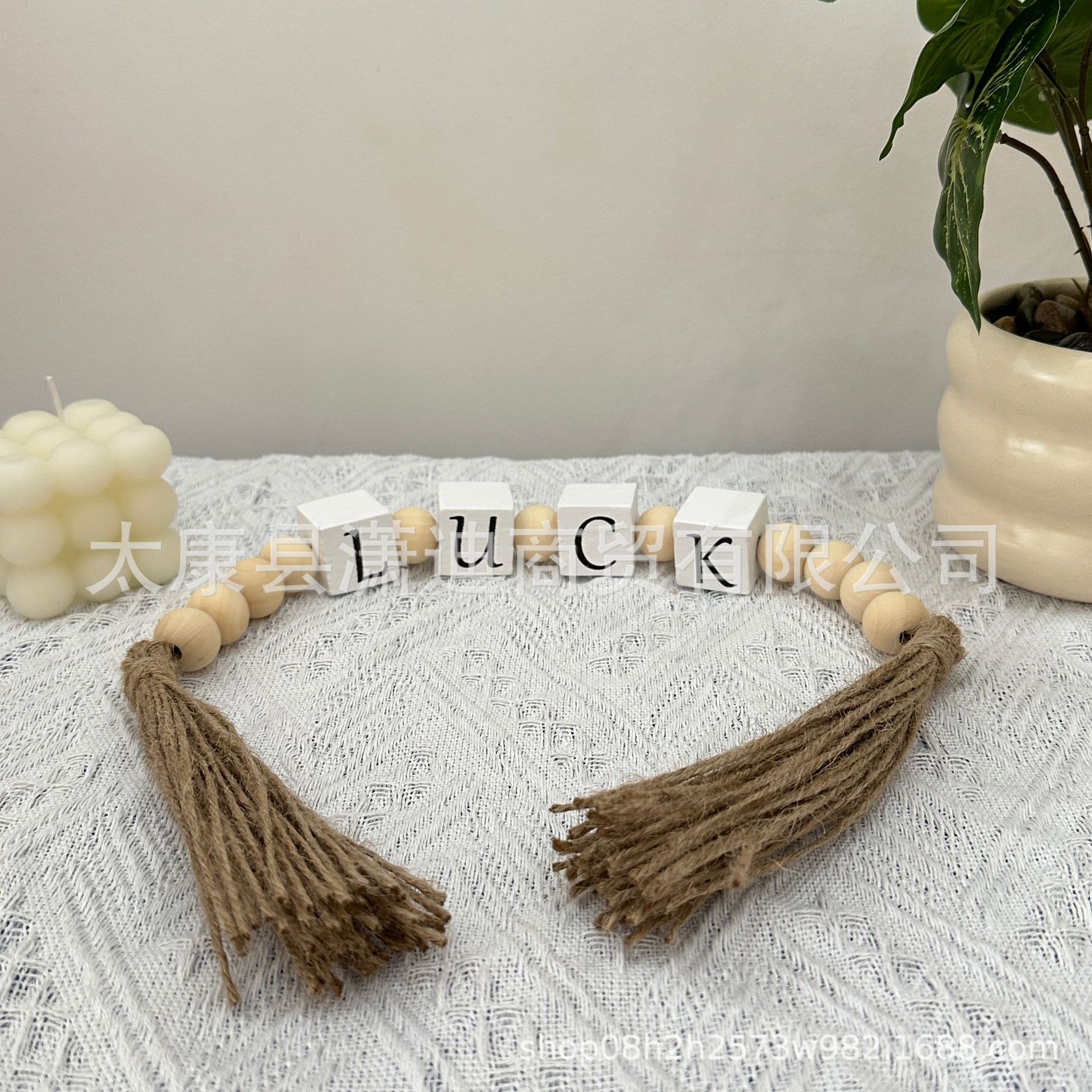 국경 간 홈 나무 구슬 구슬 대마 로프 술 사각형 편지 복고풍 술 나무 구슬 팔레트 장식 홈 장식