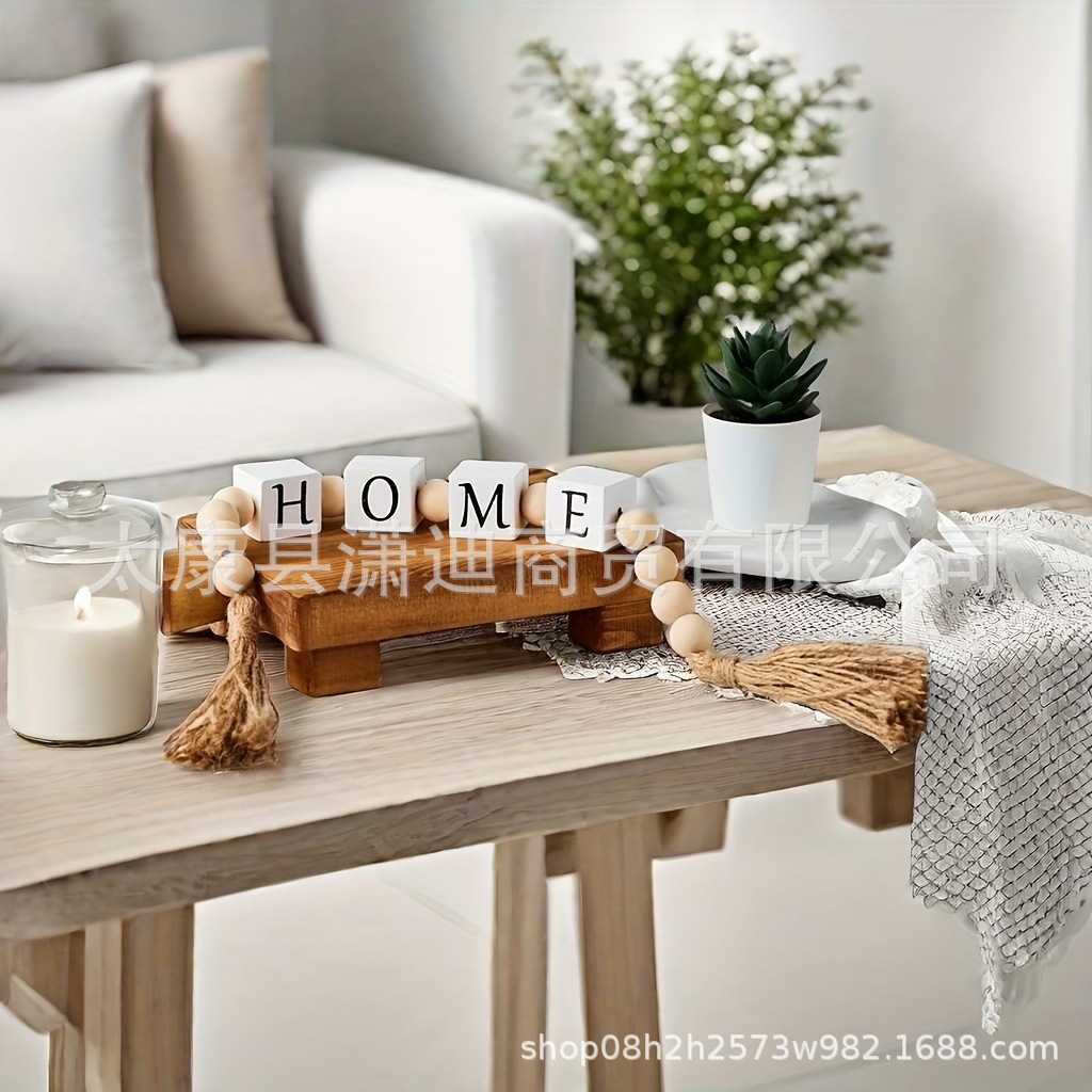국경 간 홈 나무 구슬 구슬 대마 로프 술 사각형 편지 복고풍 술 나무 구슬 팔레트 장식 홈 장식스토어 가기