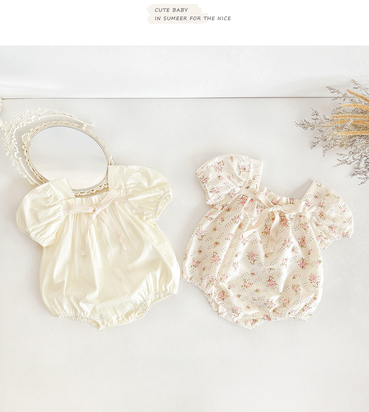 여름 한국식 소녀 아기 1 ~ 3 세 점프수트 보우 넥타이 꽃 달콤한 의상 등반 세트스토어 가기