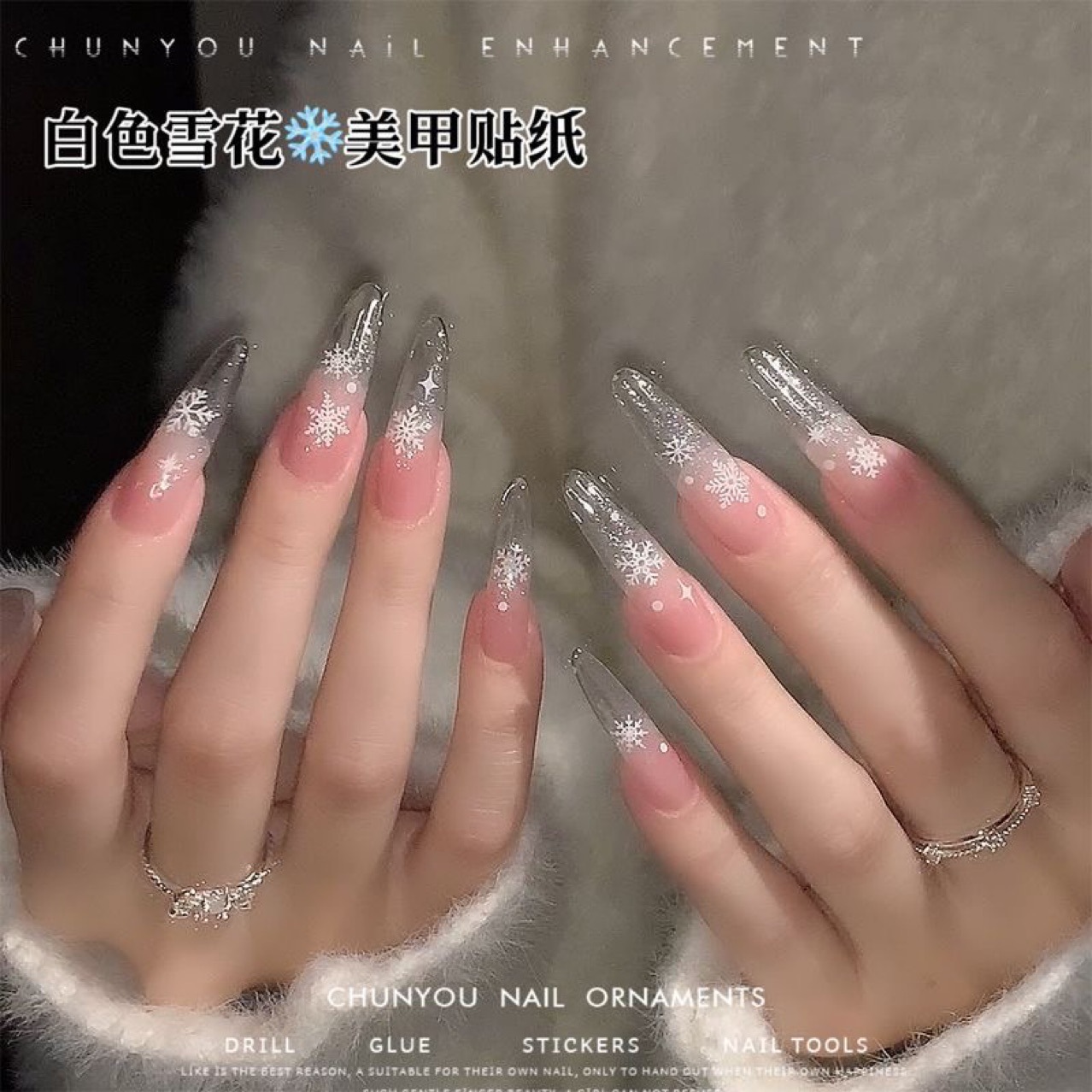 새로운 흰색 눈송이 스티커 매니큐어 눈송이 스티커 네일 패치 크리스마스 눈송이 얇은 힘든 네일 장식