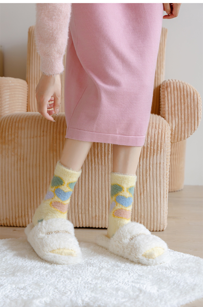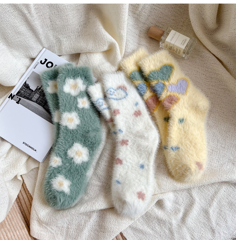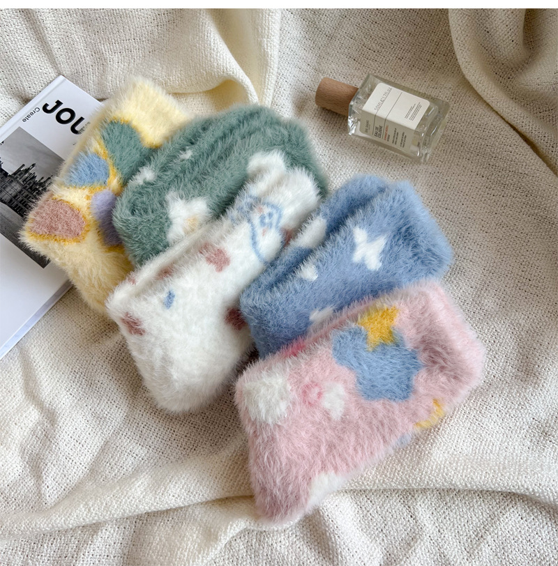 귀여운 밍크 벨벳 여성용 양말 가을과 겨울 두꺼운 따뜻한 기모 마오 위지 양말 중장 양말