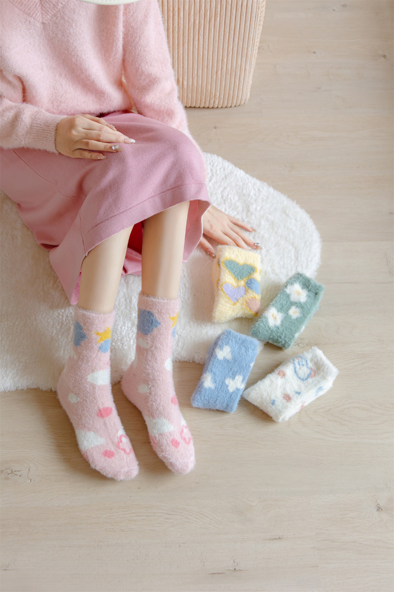 귀여운 밍크 벨벳 여성용 양말 가을과 겨울 두꺼운 따뜻한 기모 마오 위지 양말 중장 양말스토어 가기
