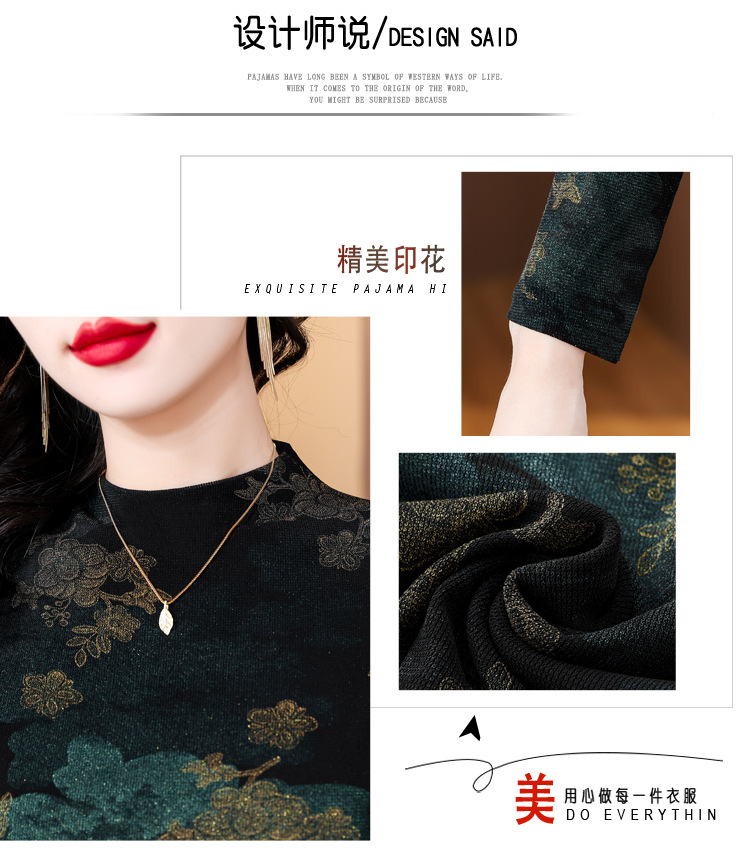 기모 두꺼운 반 높이 칼라 실크 긴팔 티셔츠 여성용 2023 가을 및 겨울 스트레치 메쉬 중국식 인쇄 탑스토어 가기