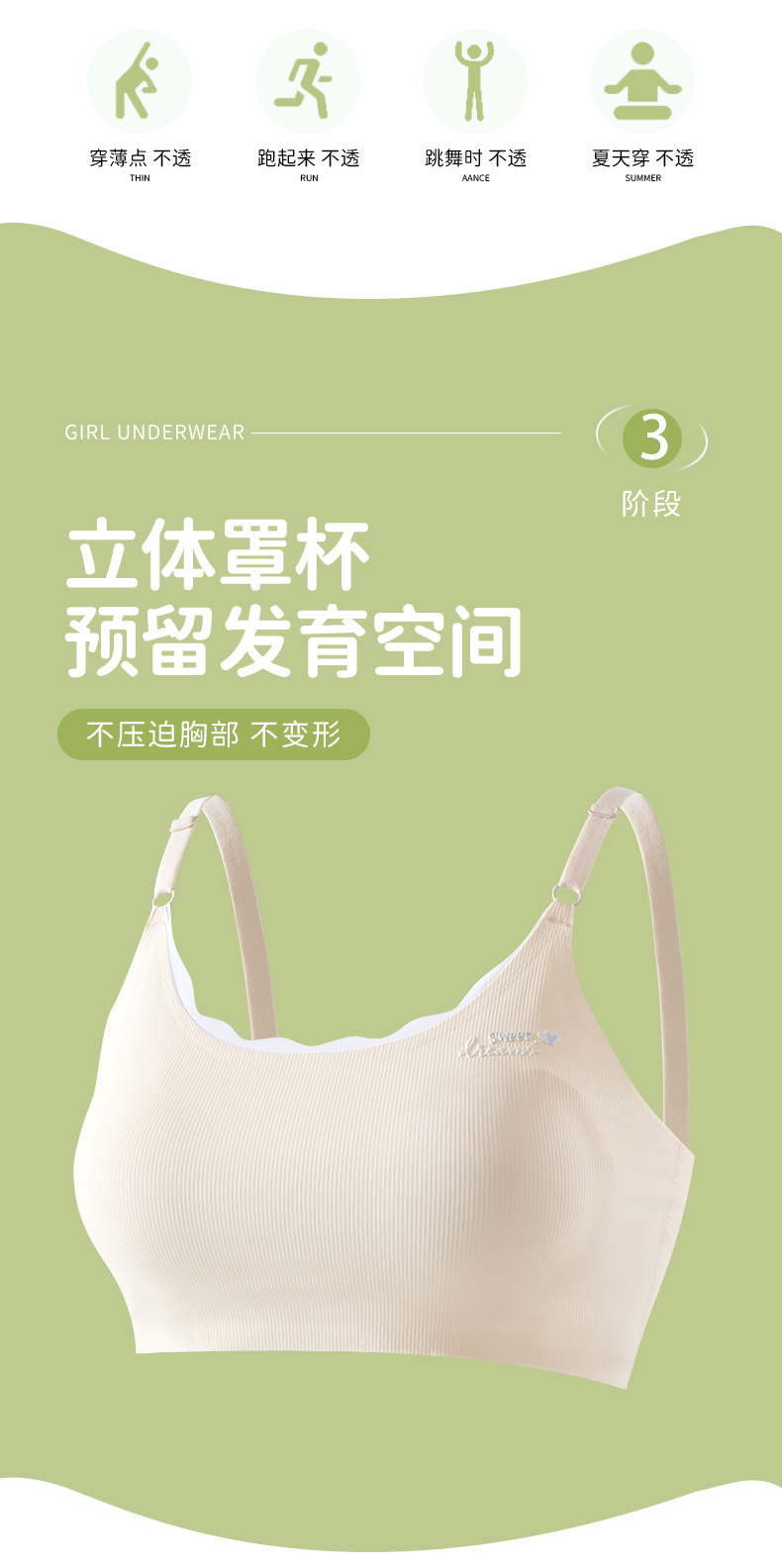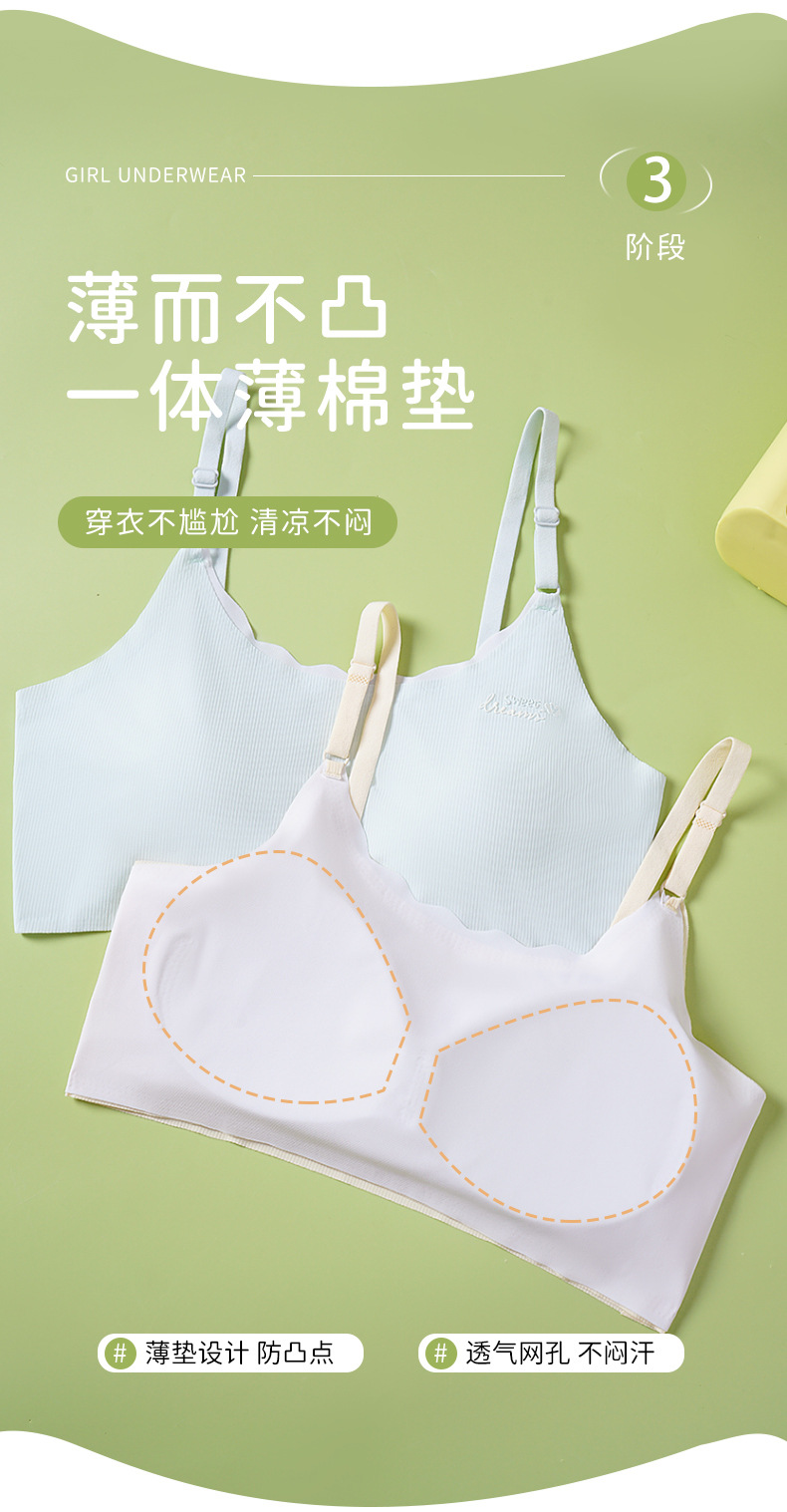 원활한 아이스 실크 발달 속옷 학생 소녀 브라 중학교 고등학교 고정 컵 얇은 조끼 새로운 스타일스토어 가기