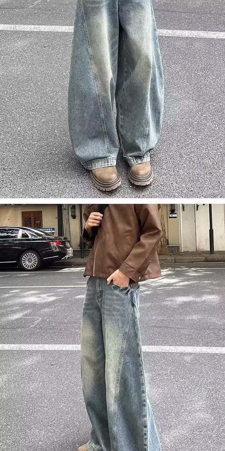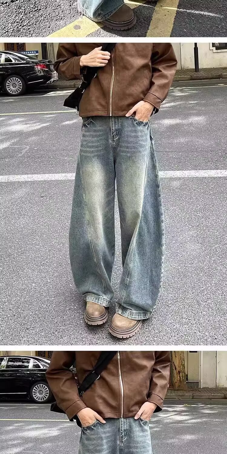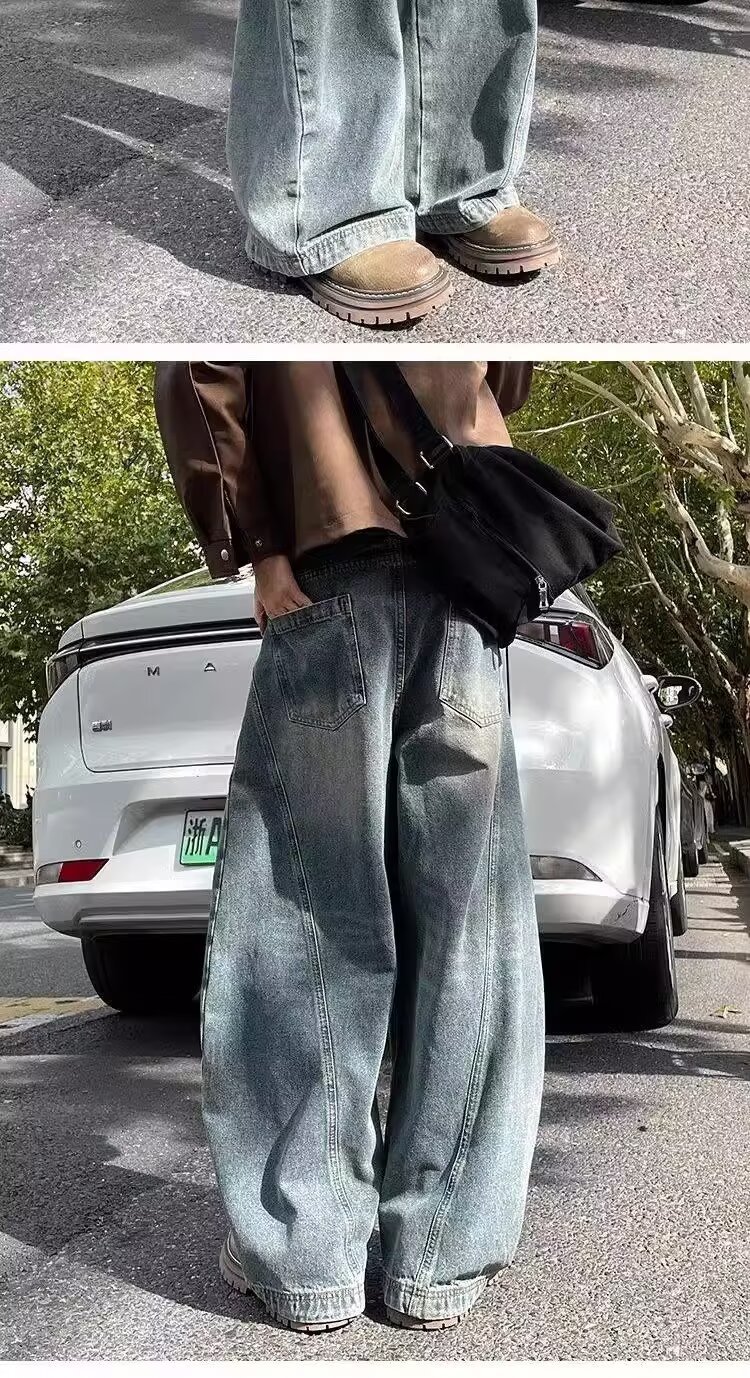 가을과 겨울 2025 새로운 도착 청바지 소년 스트레이트 튜브 느슨한 넓은 다리 데님 만도 바지 패션 브랜드 캐주얼 바지스토어 가기