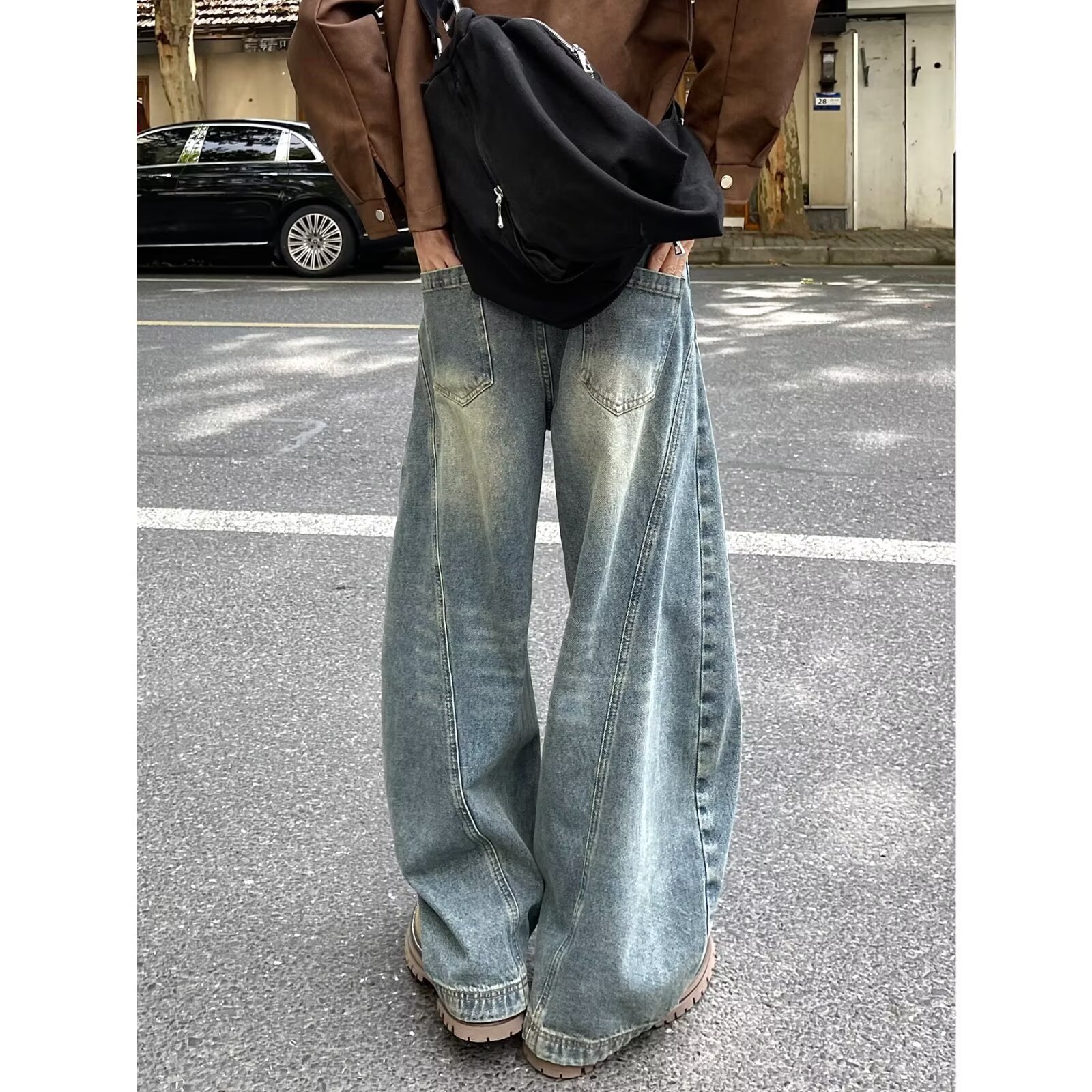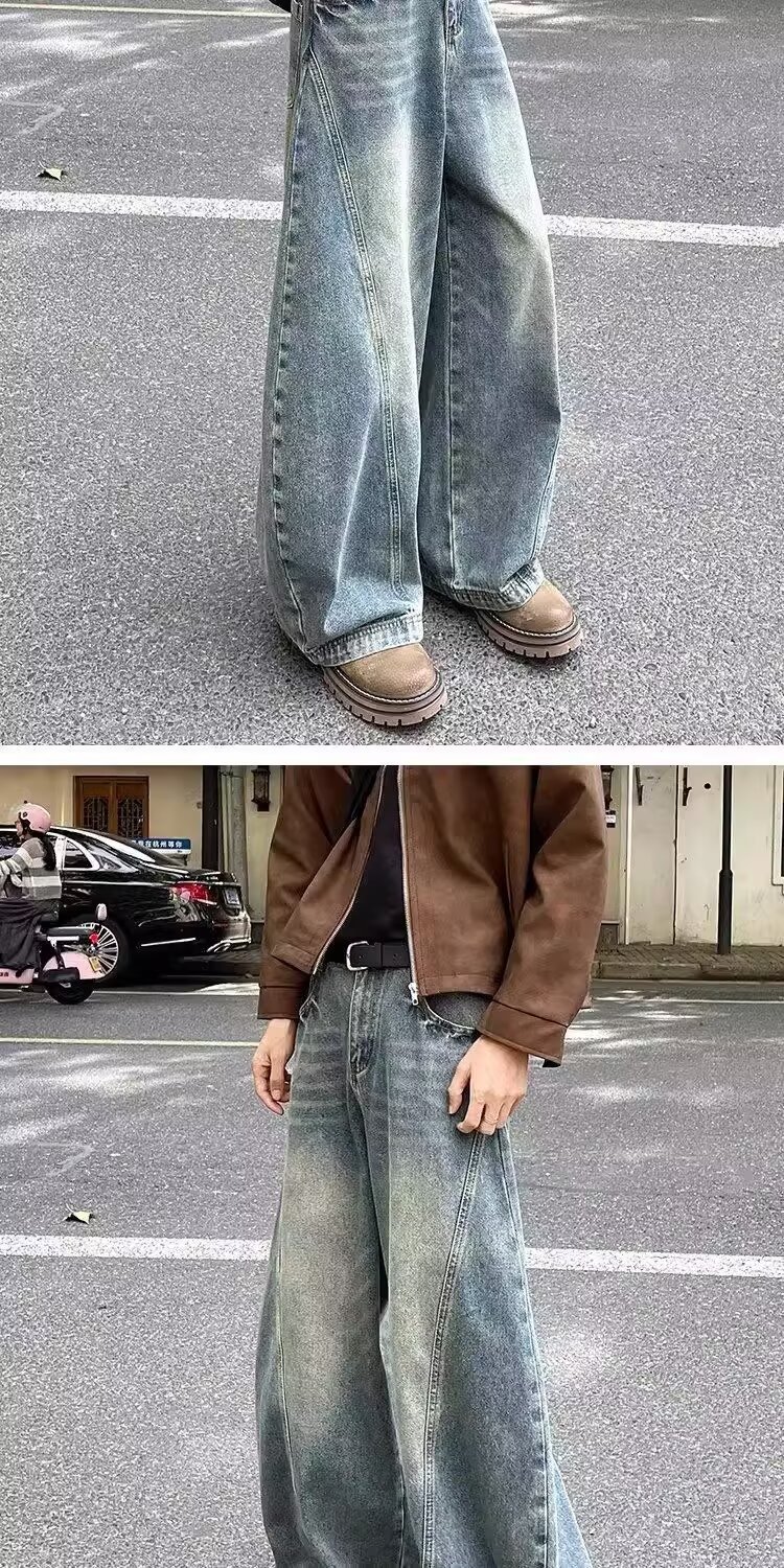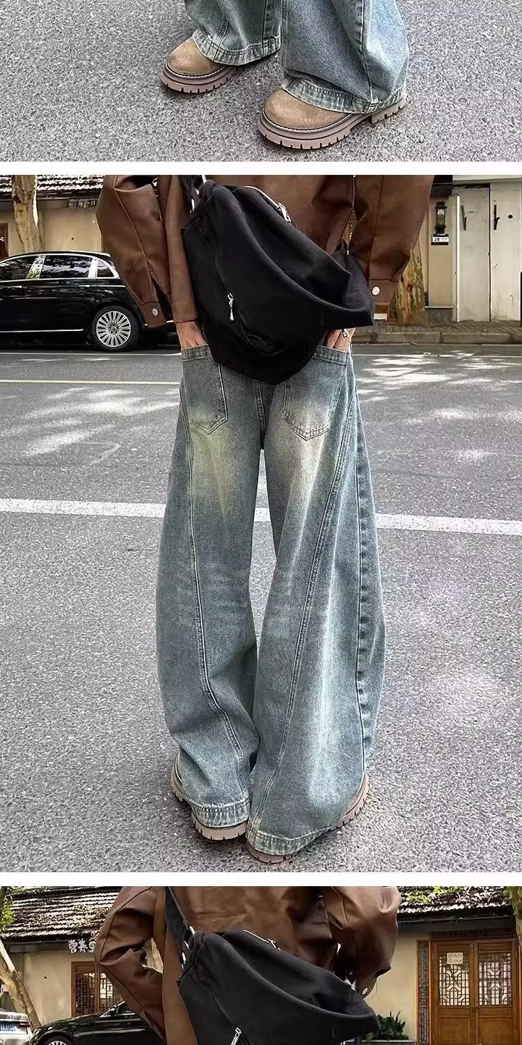 가을과 겨울 2025 새로운 도착 청바지 소년 스트레이트 튜브 느슨한 넓은 다리 데님 만도 바지 패션 브랜드 캐주얼 바지스토어 가기