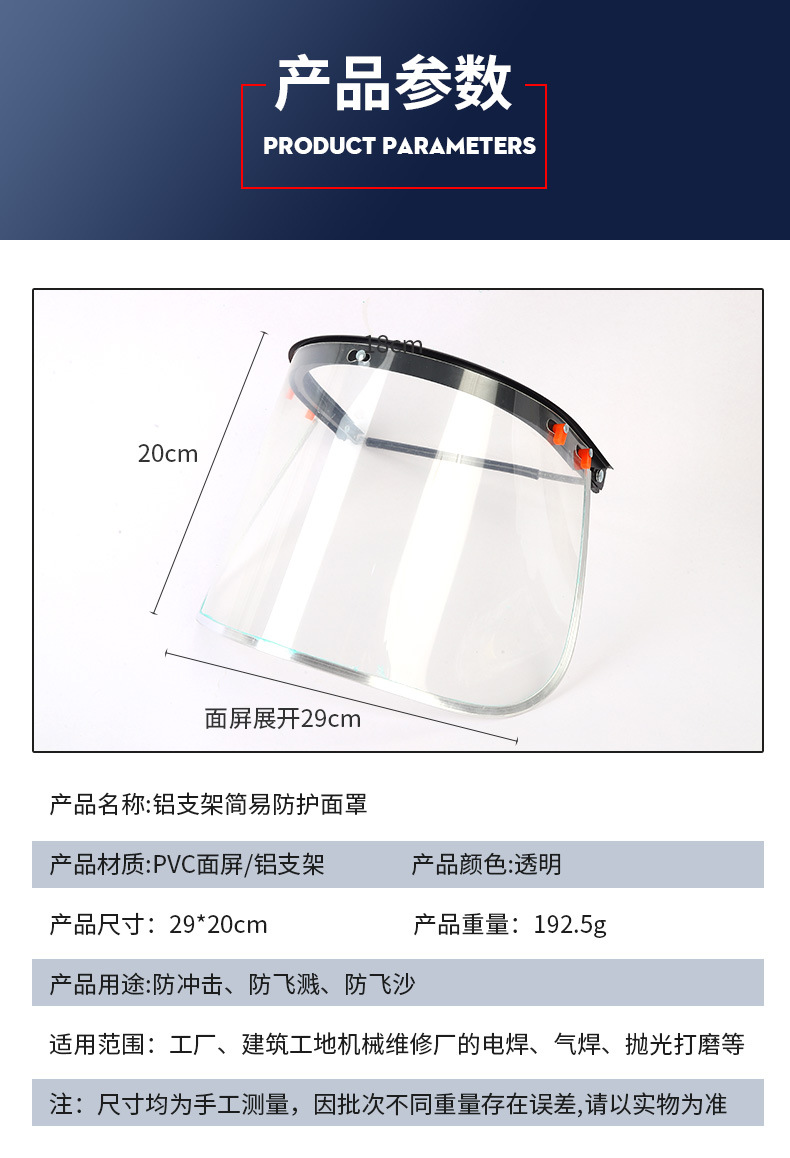 알루미늄 브래킷 간단한 보호 마스크 제조업체 공급 안개 방지 보호 마스크 헤드 장착 조절 식 얼굴 마스크스토어 가기