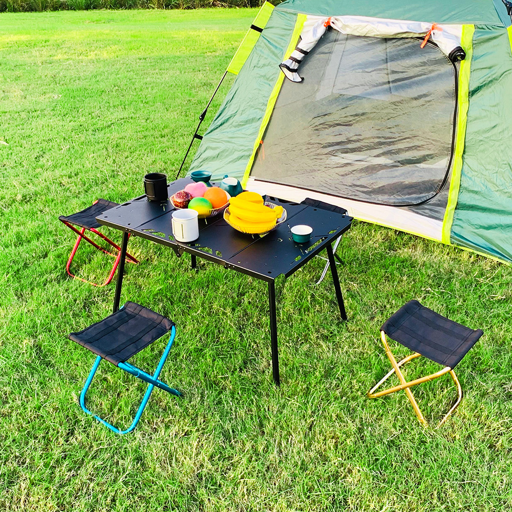 야외 캠핑 접이식 테이블 경량 4 배 휴대용 캠핑 알루미늄 합금 피크닉 테이블 바베큐 스텐트 전술 테이블