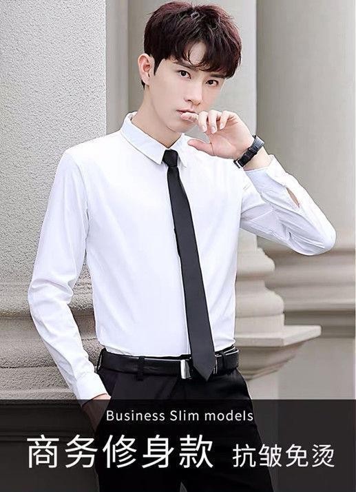 화이트 셔츠 남자 긴팔 슬림 핏 봄과 가을 한국 유행 남성 비즈니스 반팔 셔츠 올매치 솔리드 컬러 핸섬