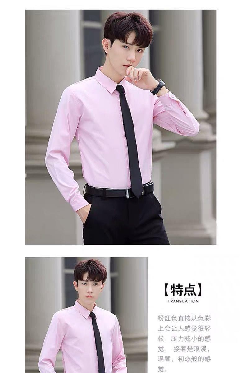 화이트 셔츠 남자 긴팔 슬림 핏 봄과 가을 한국 유행 남성 비즈니스 반팔 셔츠 올매치 솔리드 컬러 핸섬스토어 가기