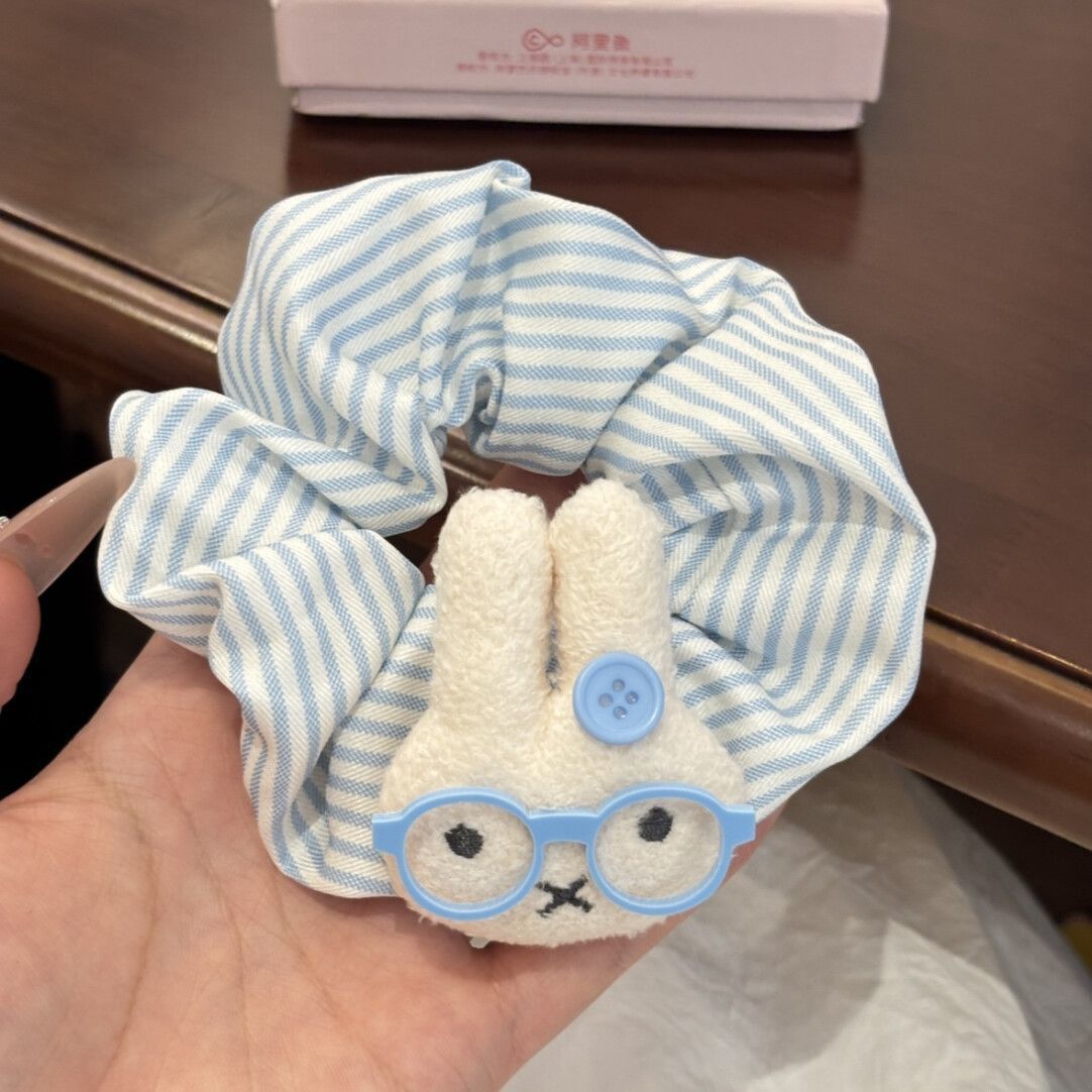 • 블루 체크 무늬-셜리 로즈 머리끈