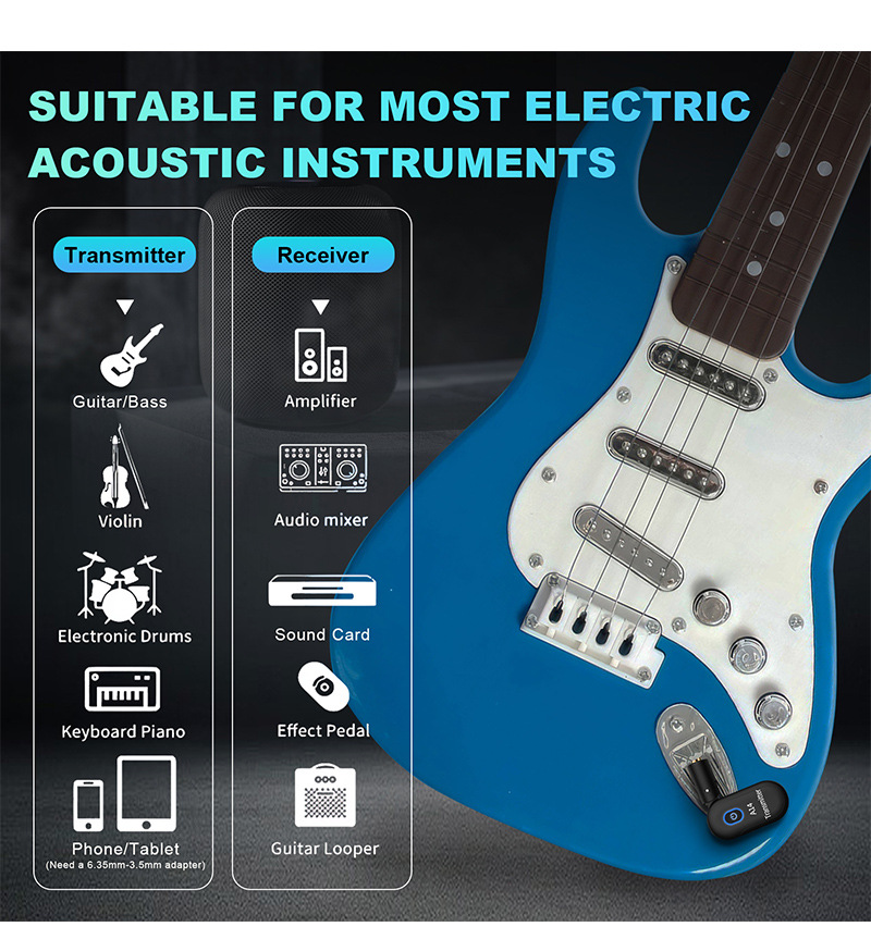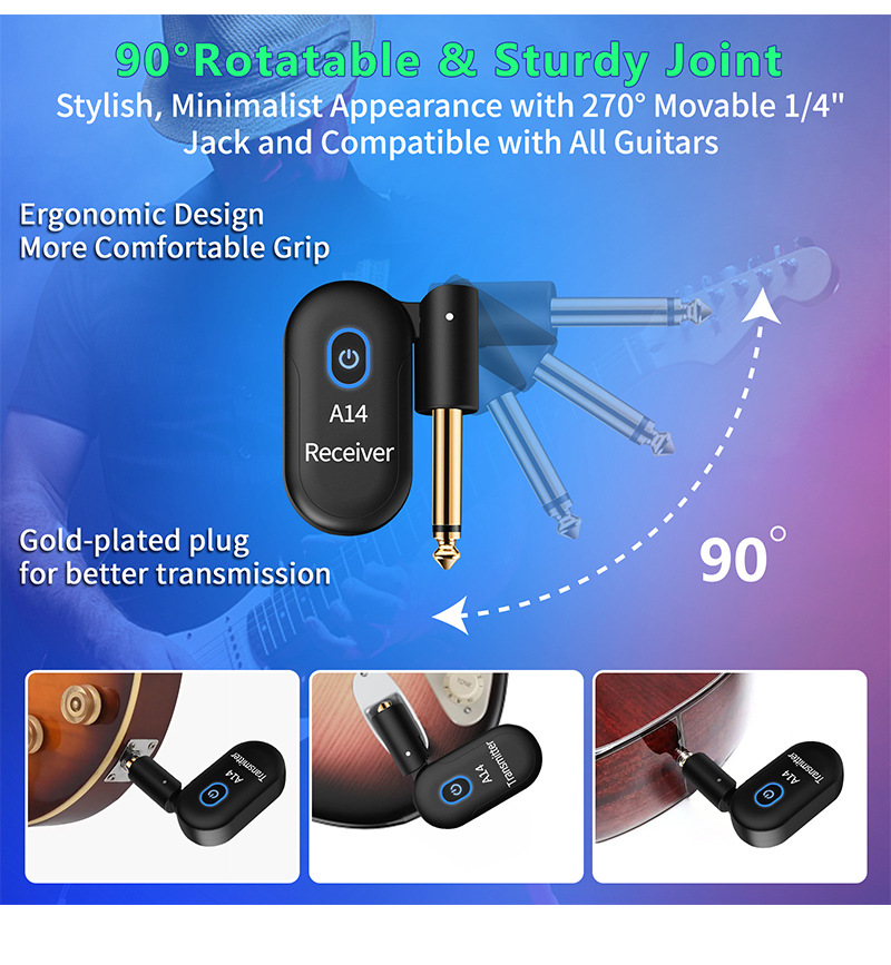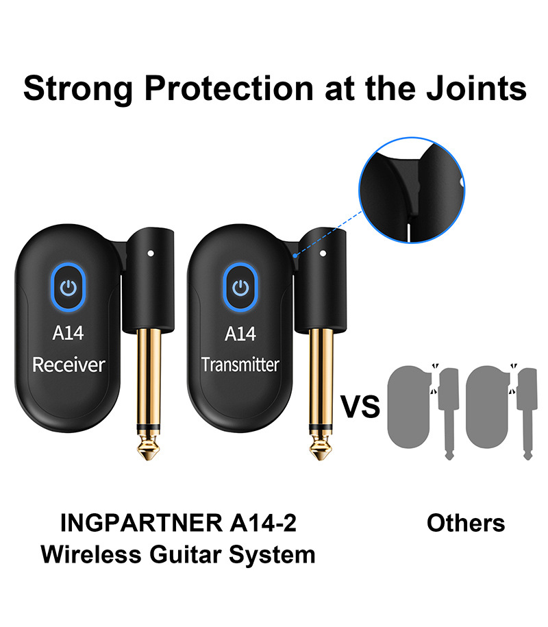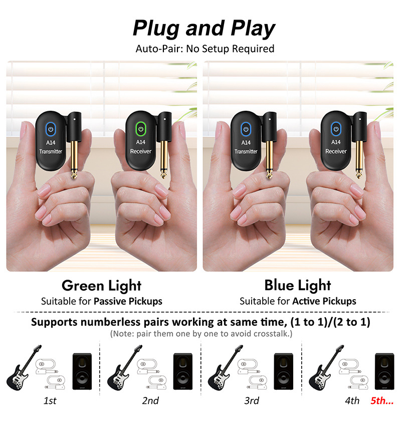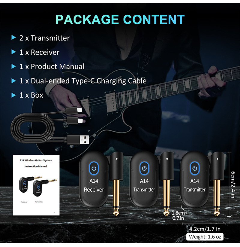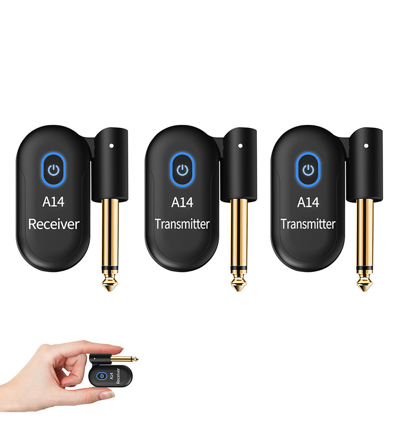 A14 1 대 2 기타 무선 송수신기 전기 블로우 파이프 무선 송신기 수신기 전자 피아노 바이올린베이스