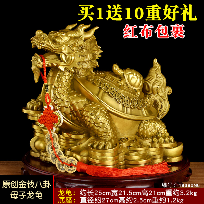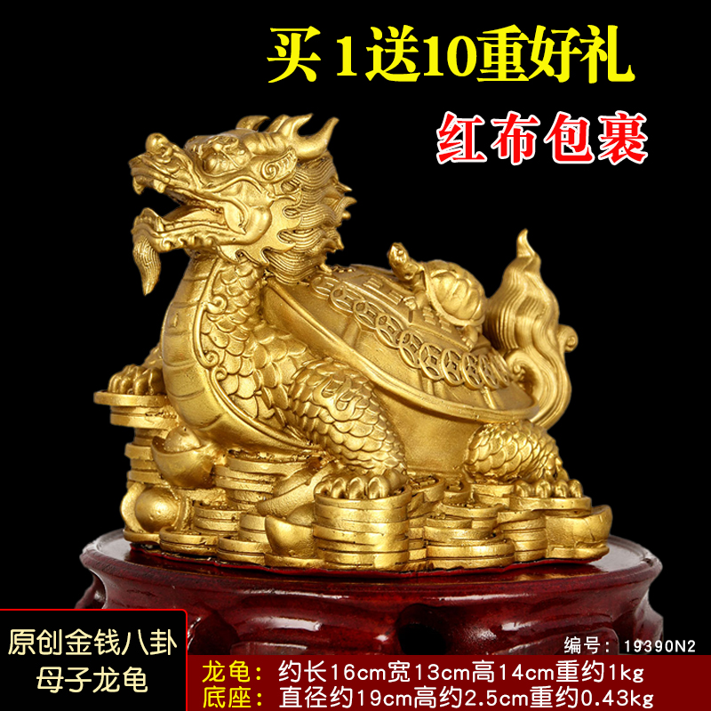 구리 용 거북이 장식품 가십 루시퍼 황금 거북 구리 어머니와 아들 용 거북이 순수한 황동 거실 장식 쌍스토어 가기