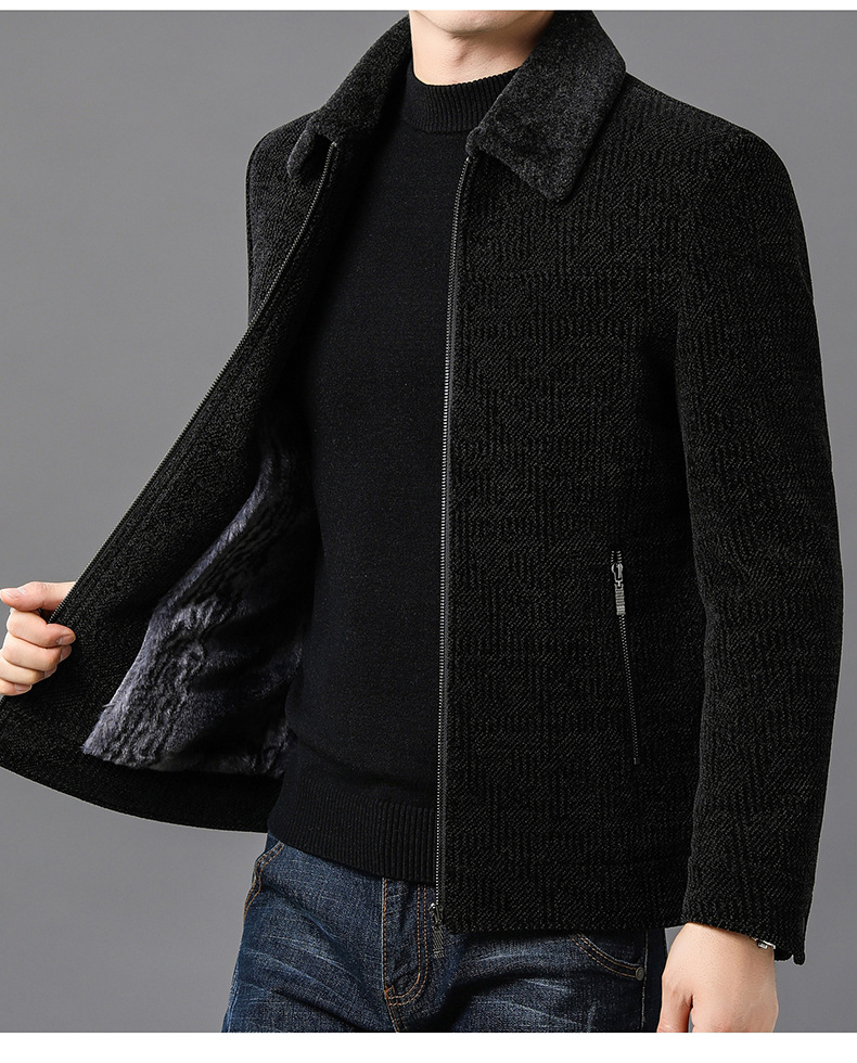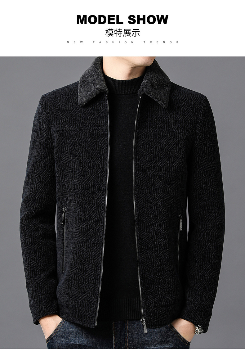 도매 가벼운 고급 남성용 양모 중년 재킷 짧은 기모 따뜻한 비즈니스 옷깃 겨울 고급 아빠 코트