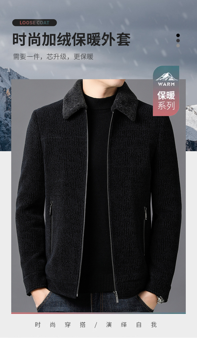 도매 가벼운 고급 남성용 양모 중년 재킷 짧은 기모 따뜻한 비즈니스 옷깃 겨울 고급 아빠 코트스토어 가기