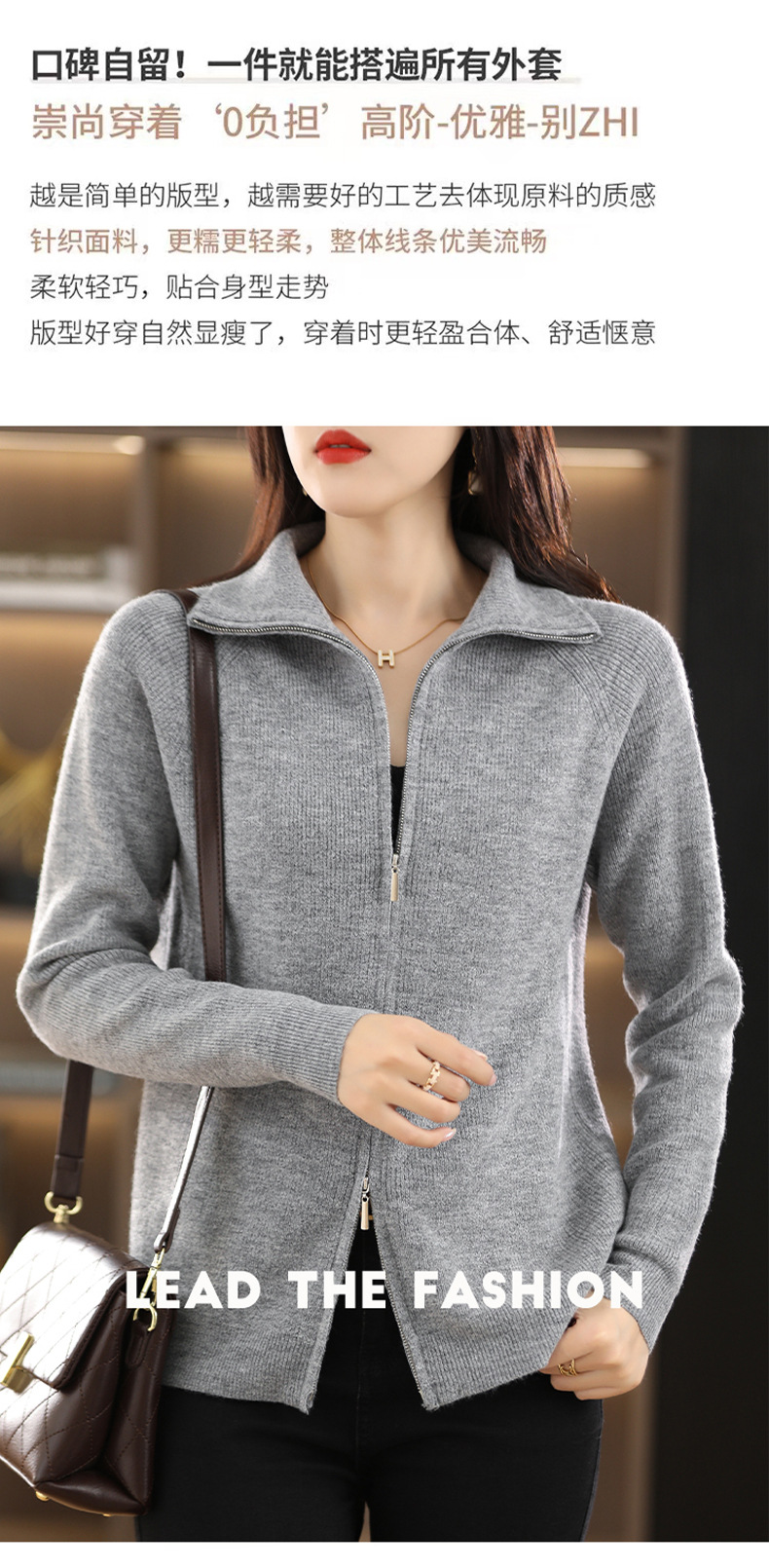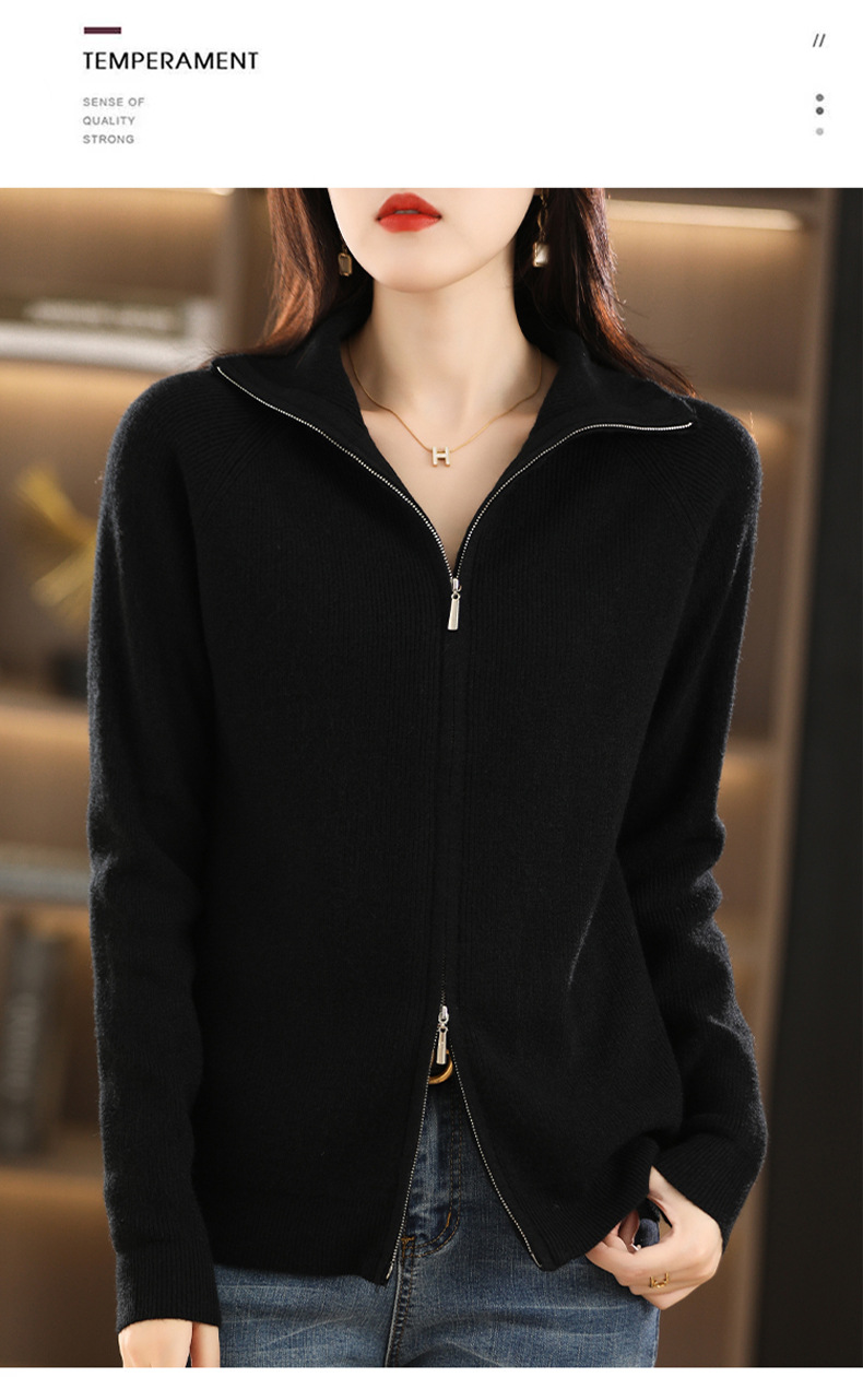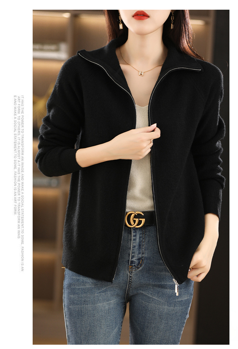 2023 가을과 겨울 새로운 니트 카디건 여성용 반팔 터틀넥 긴팔 지퍼 스웨터 재킷 느슨한 캐주얼 탑 두껍게스토어 가기