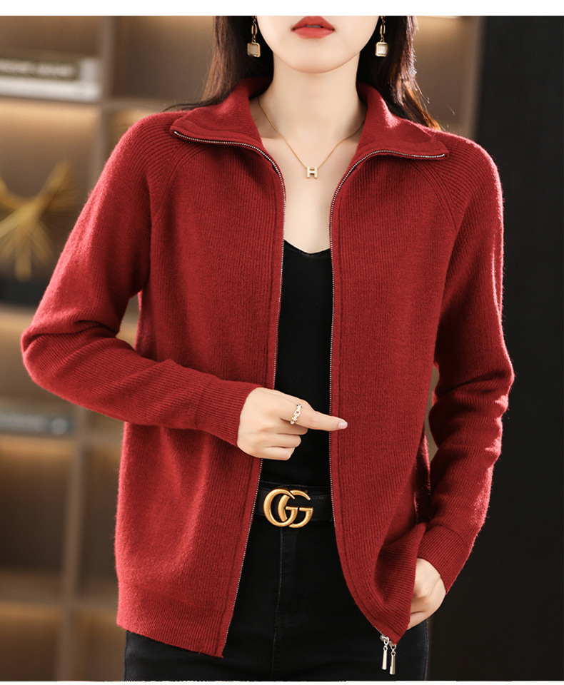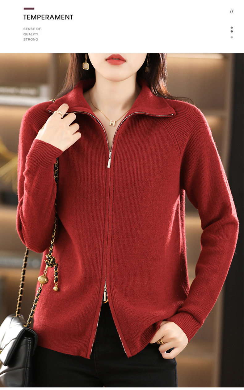 2023 가을과 겨울 새로운 니트 카디건 여성용 반팔 터틀넥 긴팔 지퍼 스웨터 재킷 느슨한 캐주얼 탑 두껍게
