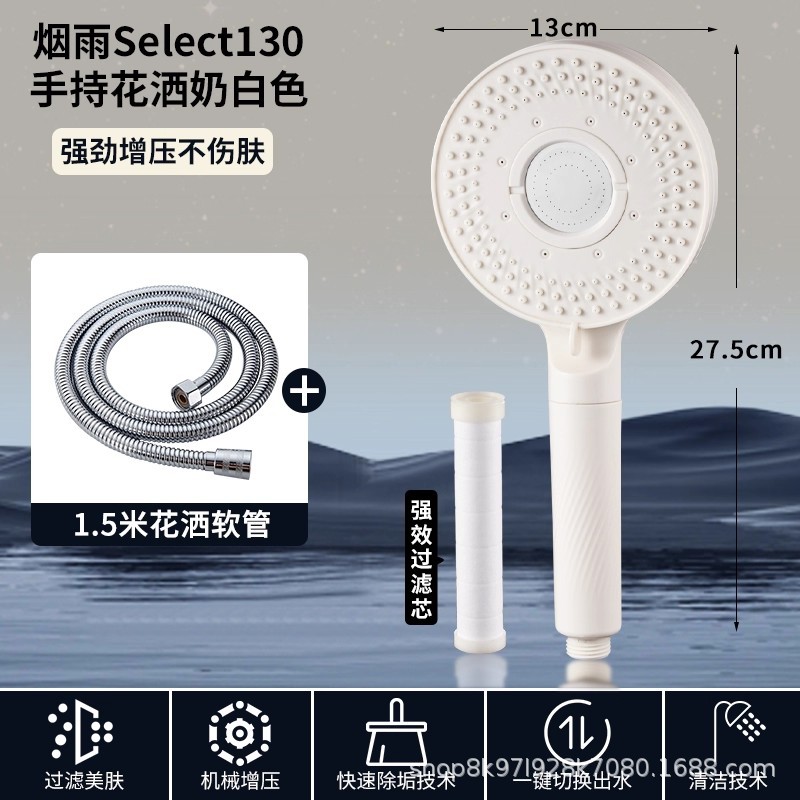 • 【크림 화이트 세트 1】 밀크 화이트 샤워기 + 1.5m 고밀도 연질 호스 (고급 필터 카트리지 *1 증정)
