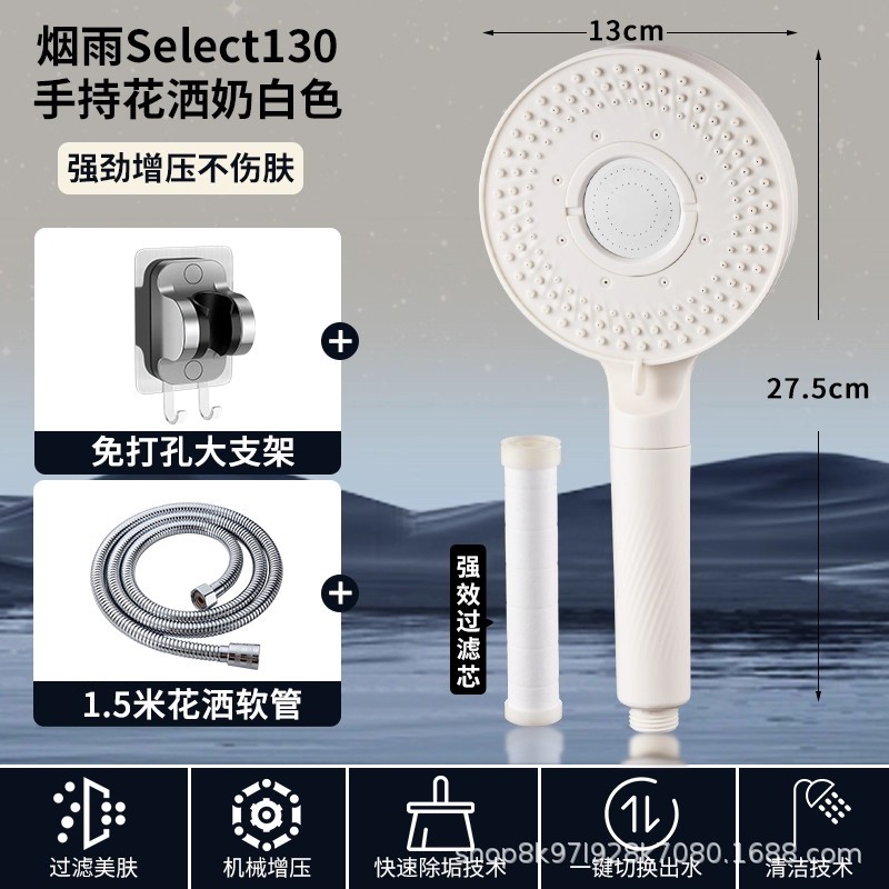 • [크림 화이트 스페셜 세트] 샤워 헤드 + 호스 1.5m 개 + 브래킷 (무료 두꺼운 필터 요소 * 1)