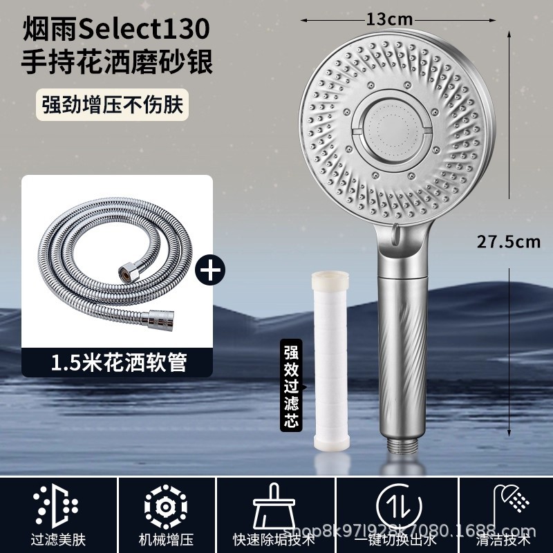 • [스트리머 실버 세트 1] 실버 샤워기 + 1.5m 암호화 호스 (무료 두꺼운 필터 요소*1)