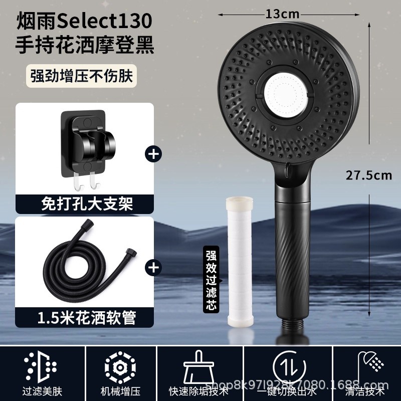 • [딥 블랙 특별 제공 세트 1] 샤워 헤드 + 1.5m 호스 + 브래킷(무료 두꺼운 필터 요소*1)