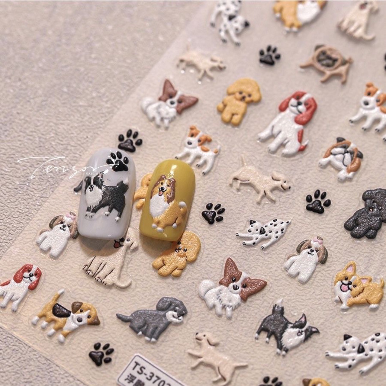 해피 강아지 네일 아트 스티커 Corgi Golden Mool Chai Dog Spots 만화 스테레오 릴리프 강아지 장식 스티커 새로운스토어 가기