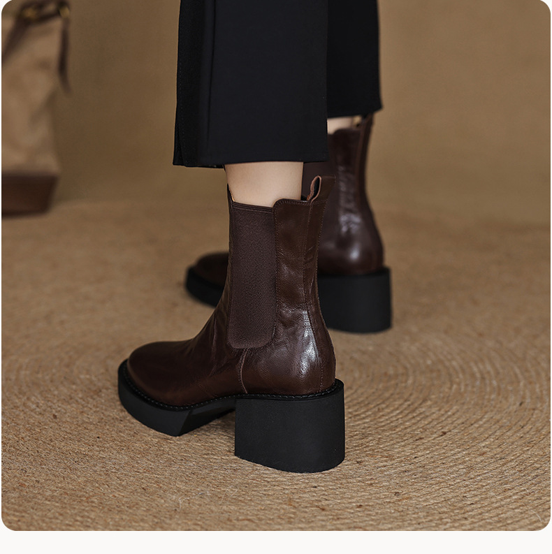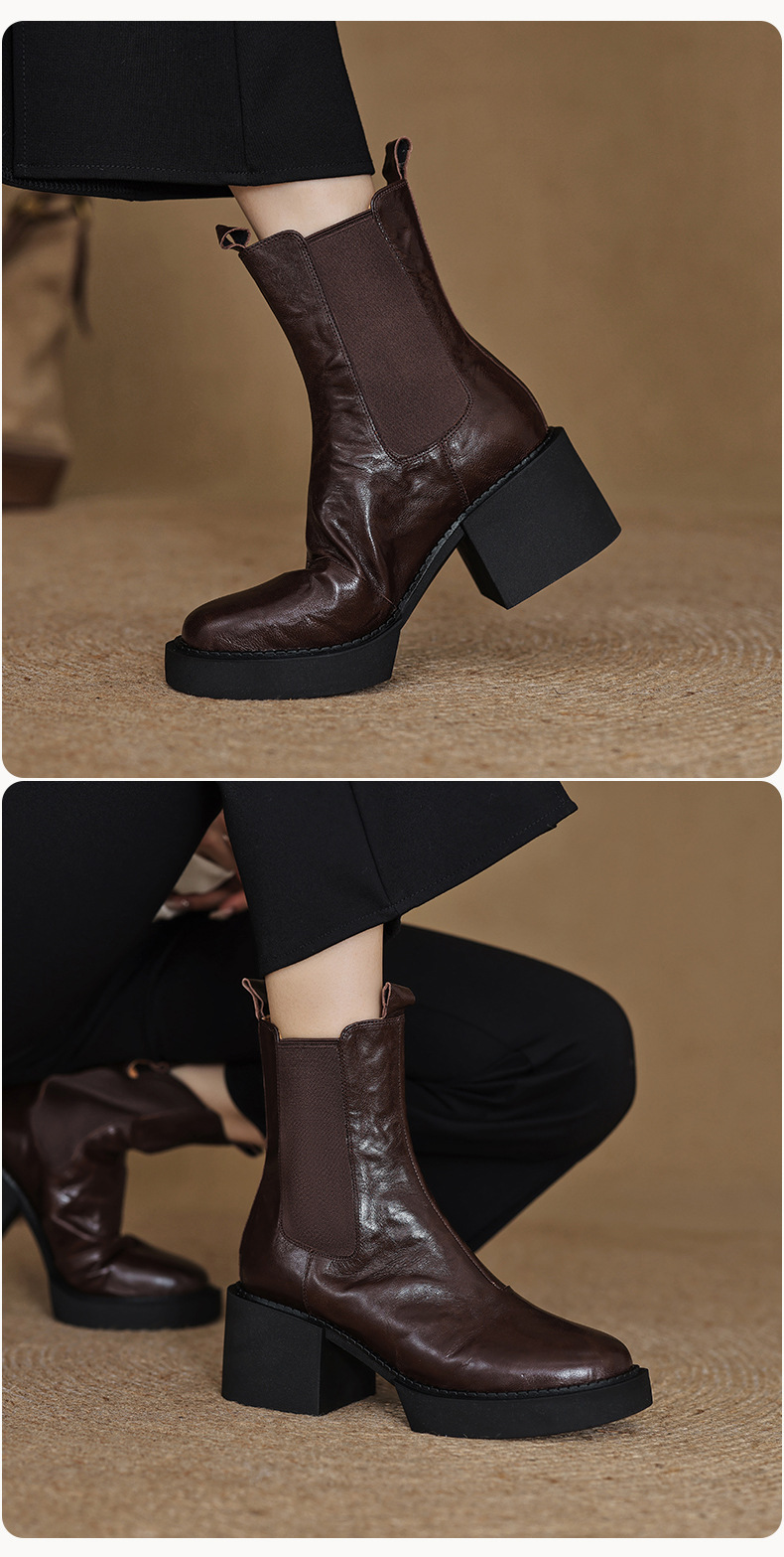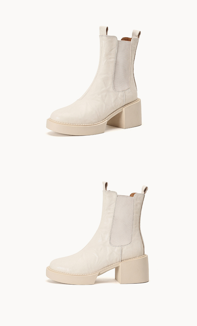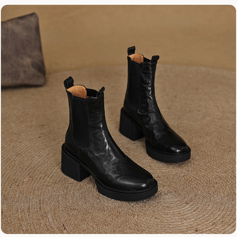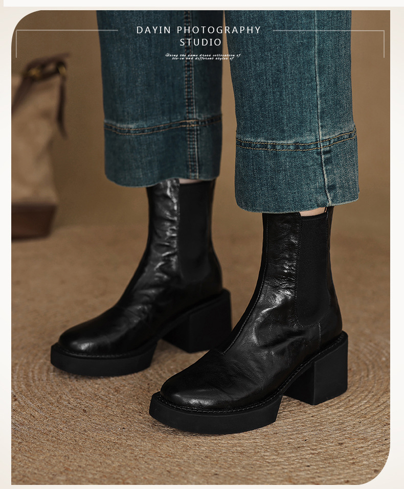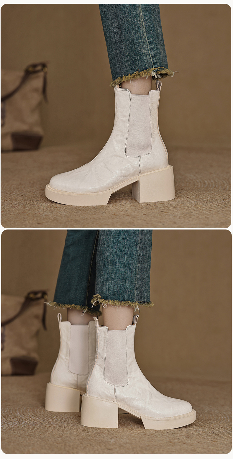 작은 두꺼운 밑창 첼시 부츠 여자 정품 가죽 두꺼운 힐 얇은 부츠 2024 새로운 가을 및 겨울 하이힐 올 매치 발목 부츠스토어 가기