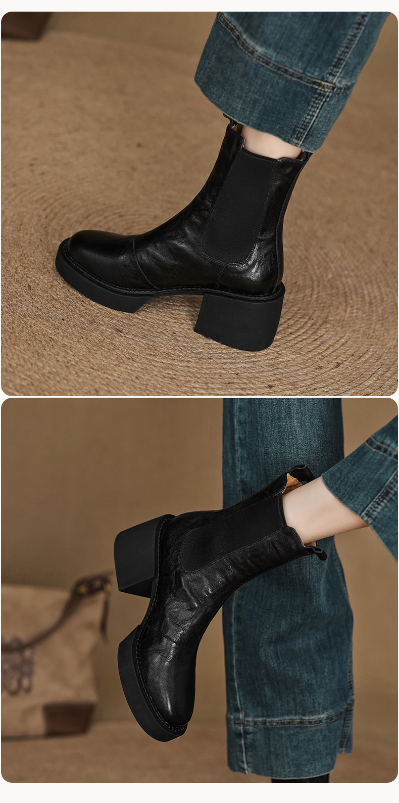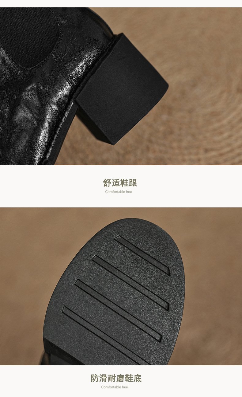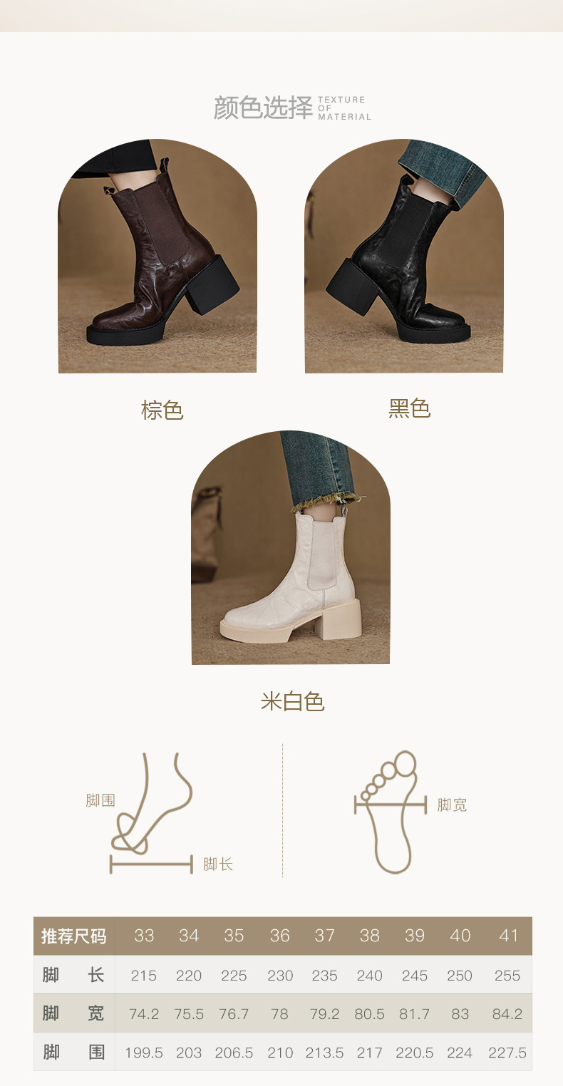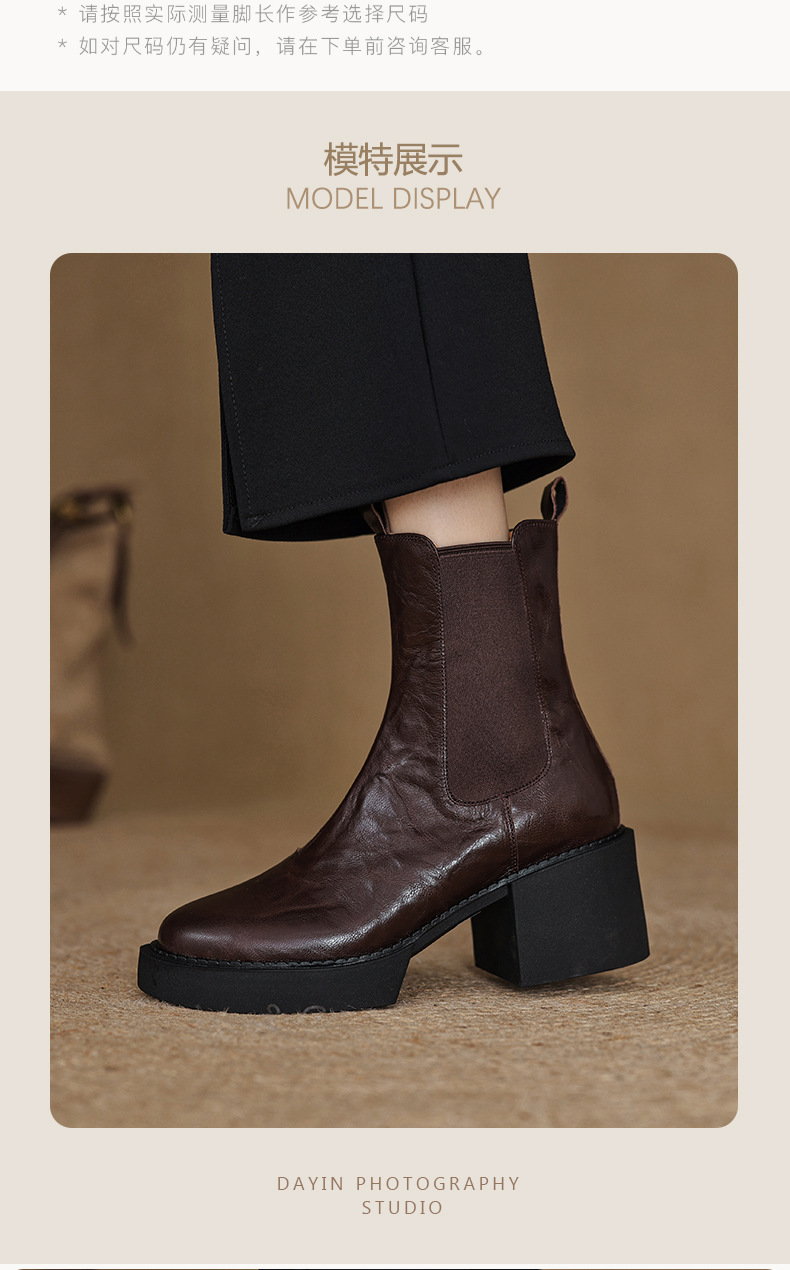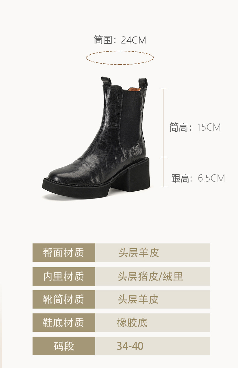 작은 두꺼운 밑창 첼시 부츠 여자 정품 가죽 두꺼운 힐 얇은 부츠 2024 새로운 가을 및 겨울 하이힐 올 매치 발목 부츠스토어 가기