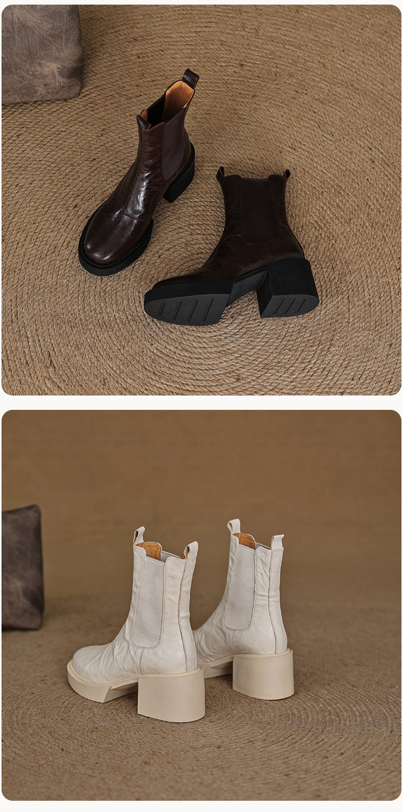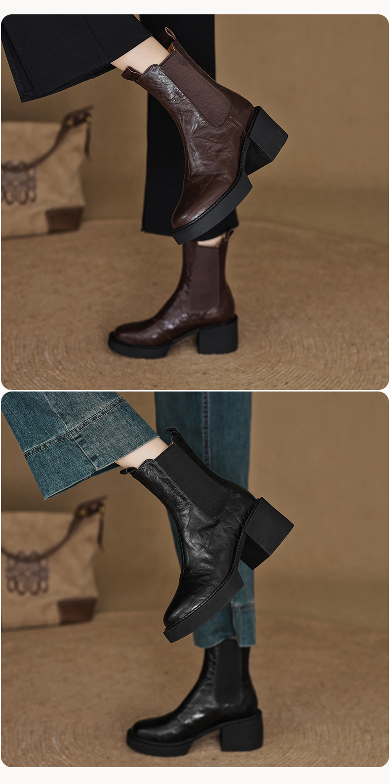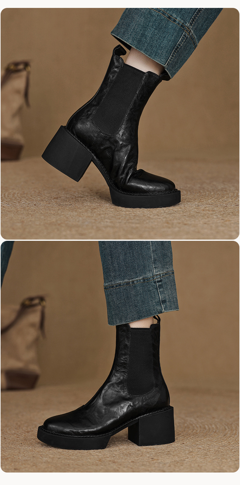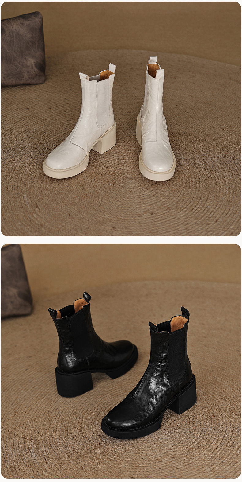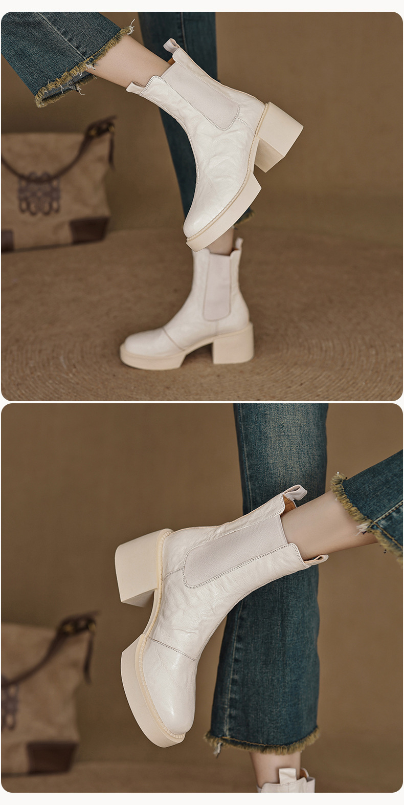 작은 두꺼운 밑창 첼시 부츠 여자 정품 가죽 두꺼운 힐 얇은 부츠 2024 새로운 가을 및 겨울 하이힐 올 매치 발목 부츠스토어 가기