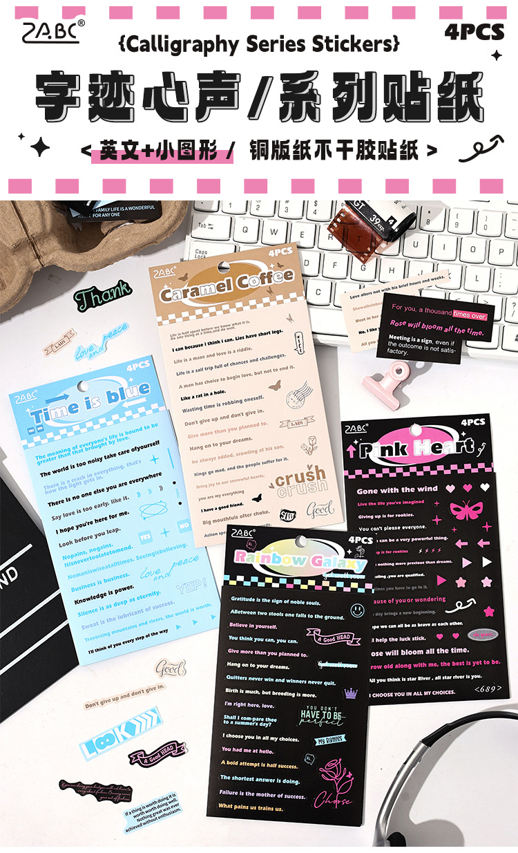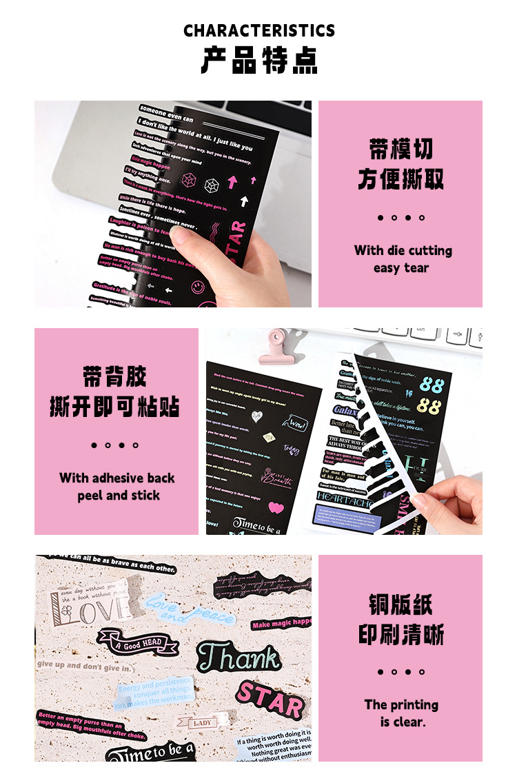 새로운 필기 음성을위한 국경 간 대외 무역 영어 손 계정 스티커 그래픽 손 계정 소재 diy 스티커 도매