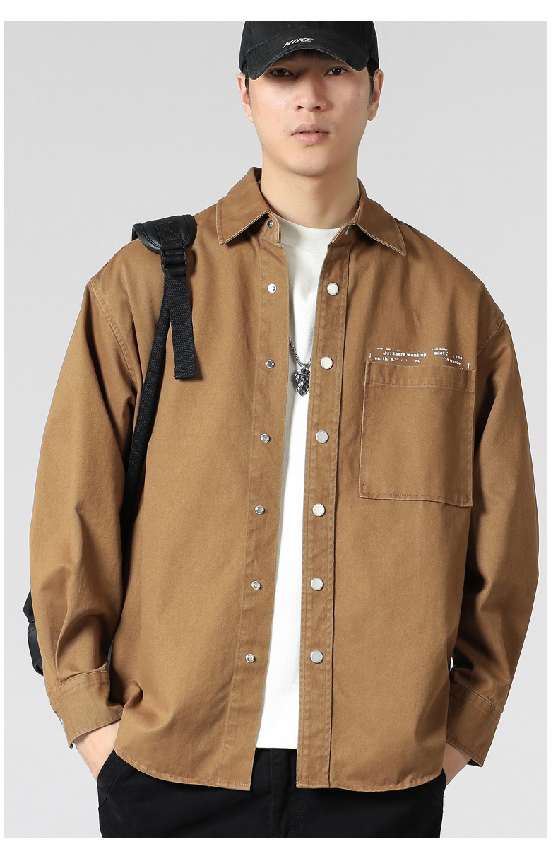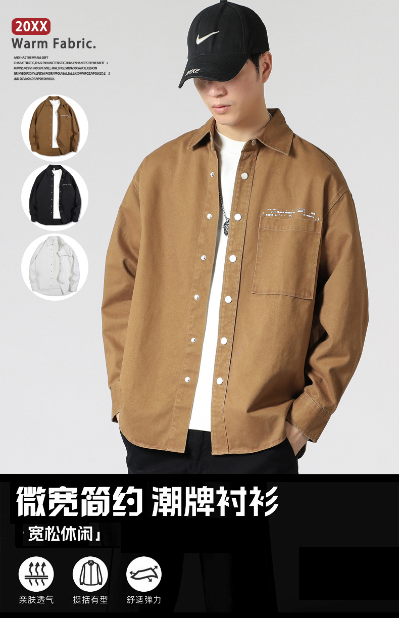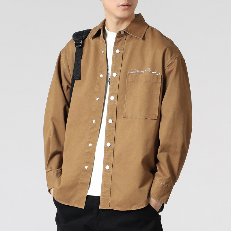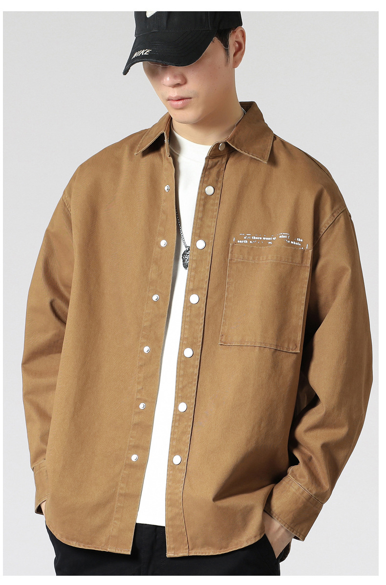 LKTM 남성 # 세탁 된 구면 인쇄 셔츠 재킷 남성 패션 브랜드 옷깃 느슨한 캐주얼 긴 소매 셔츠스토어 가기