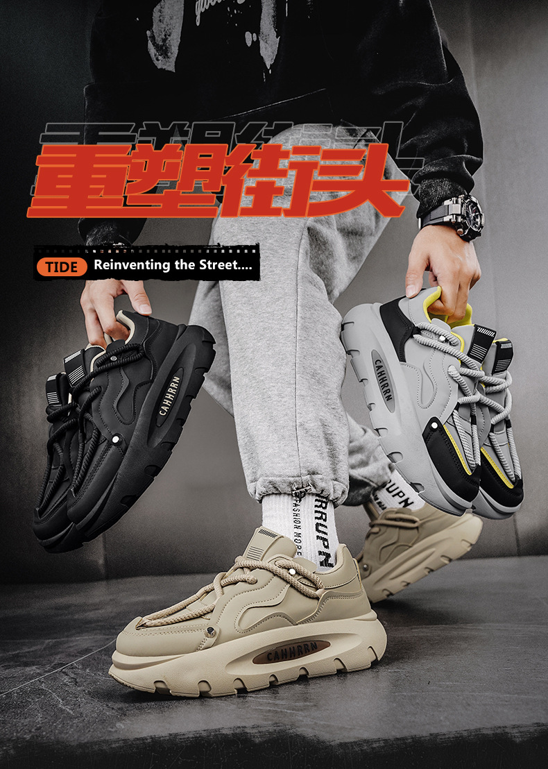 유럽 역 남성 신발 가을과 겨울 트렌디 브랜드 올매치 하이 레벨 센스 학생 스포츠 레저 러닝 두꺼운 단독 토레 신발 증가