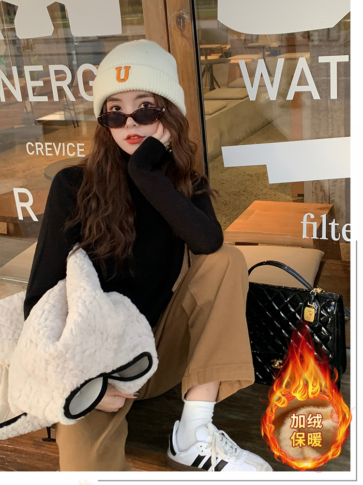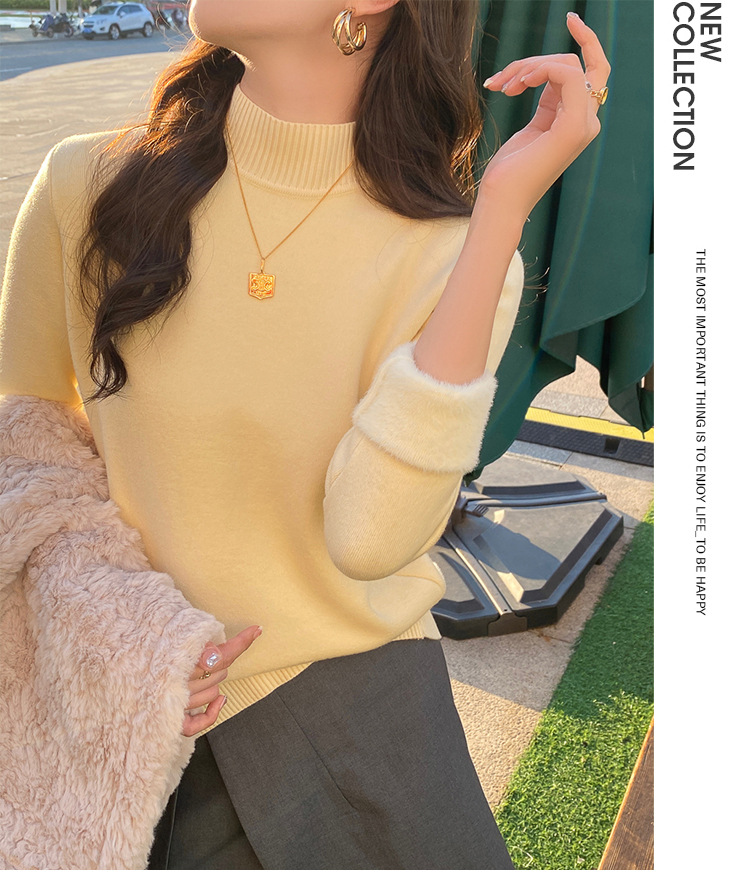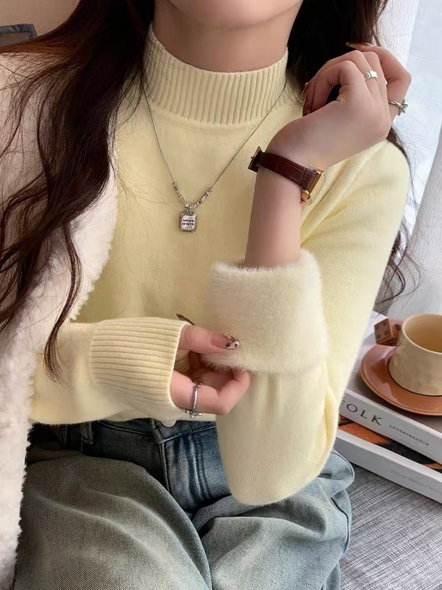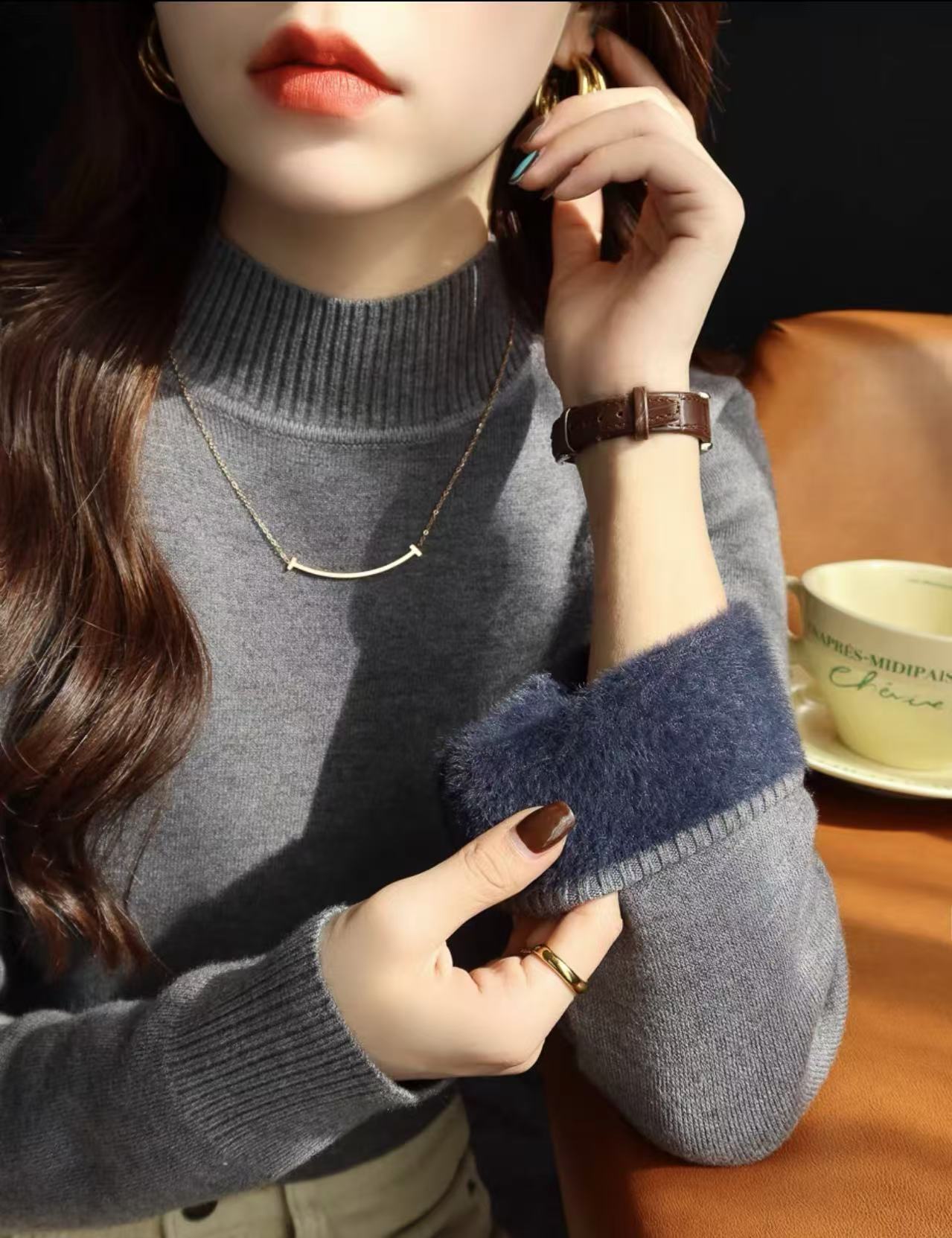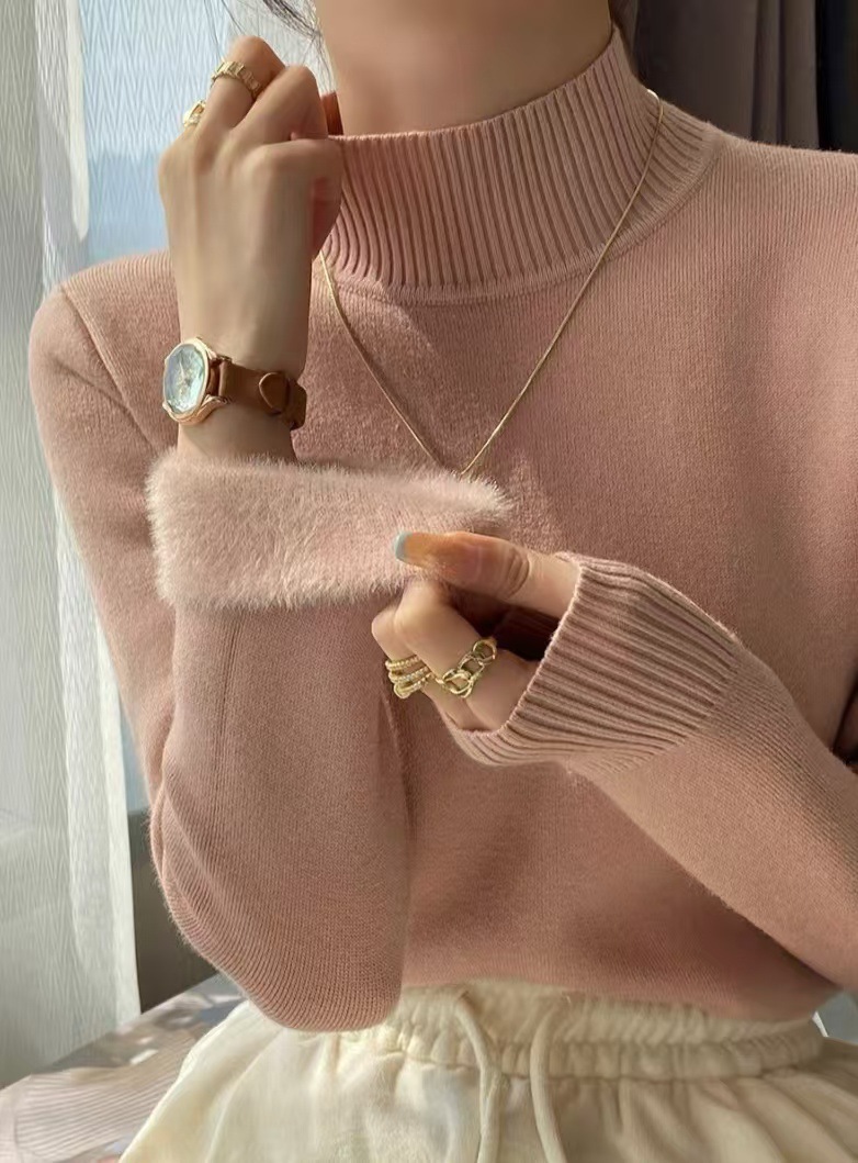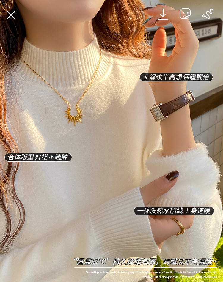앤팅루 캐시미어 도파민 자체 가열 원피스 밍크 캐시미어 기모 스웨터 하프 터틀넥 내베이스 셔츠