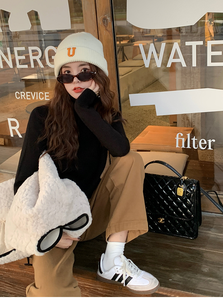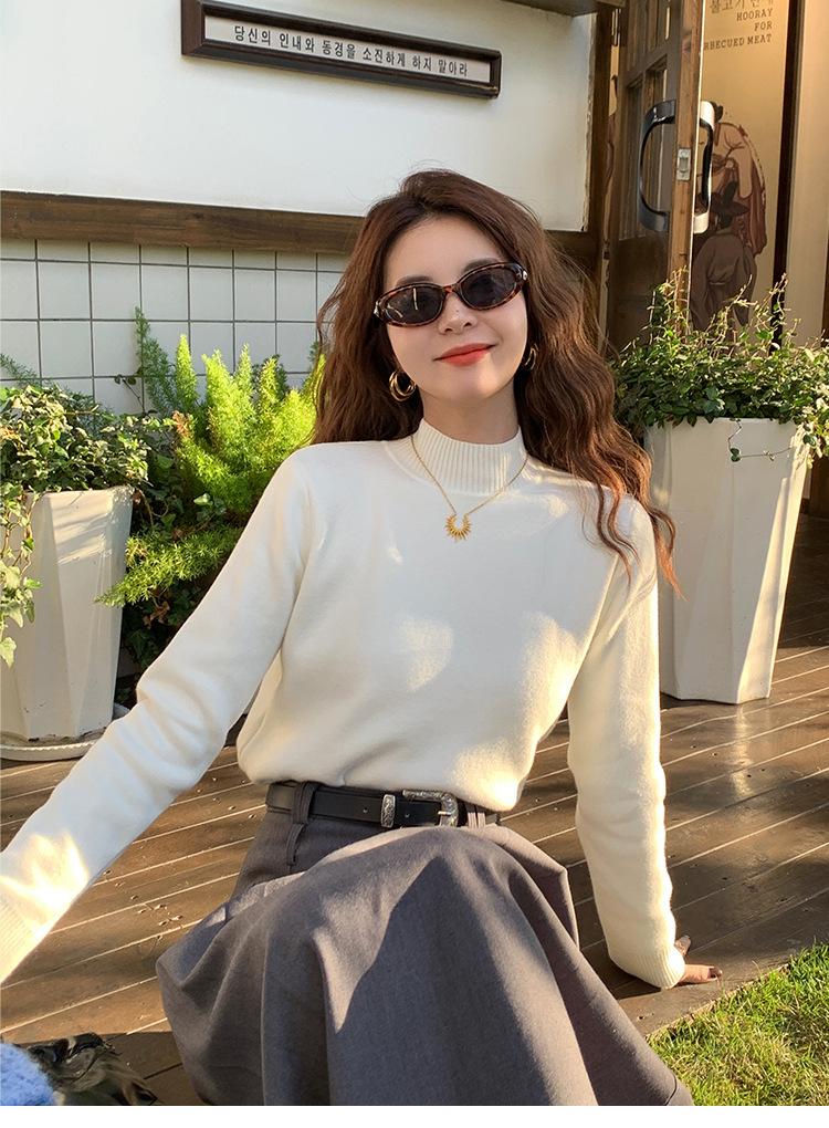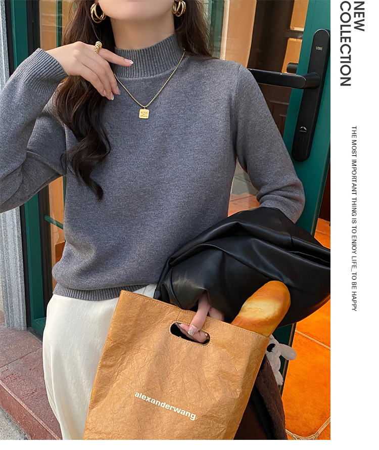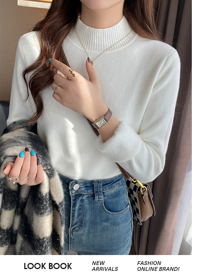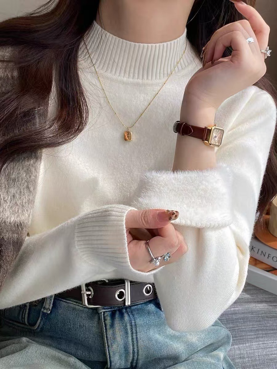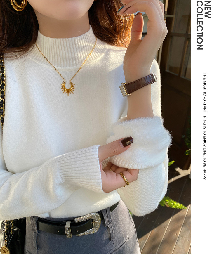 앤팅루 캐시미어 도파민 자체 가열 원피스 밍크 캐시미어 기모 스웨터 하프 터틀넥 내베이스 셔츠