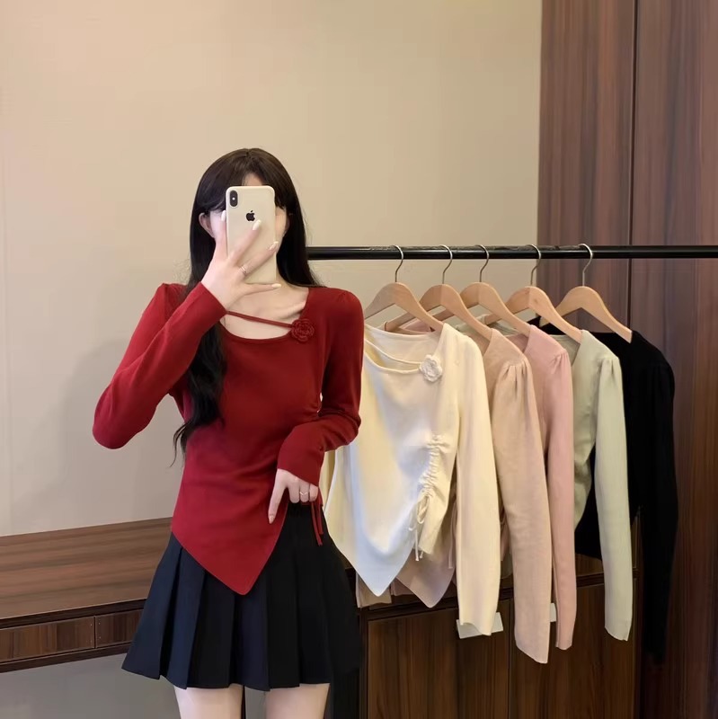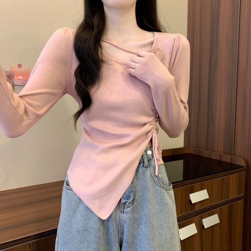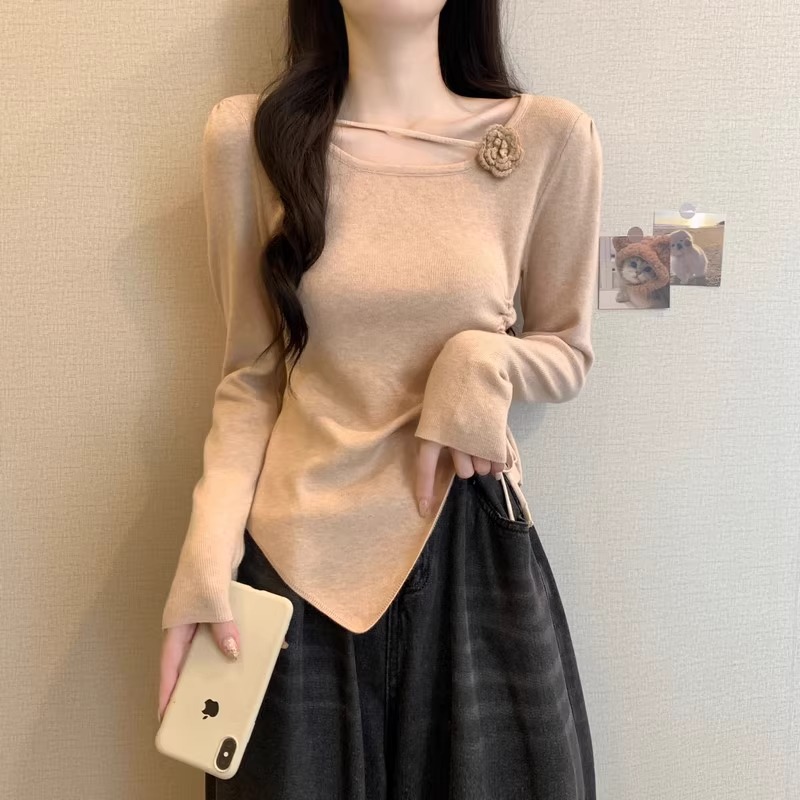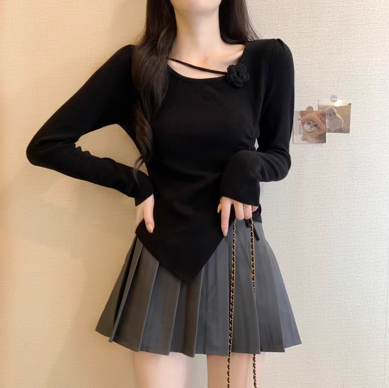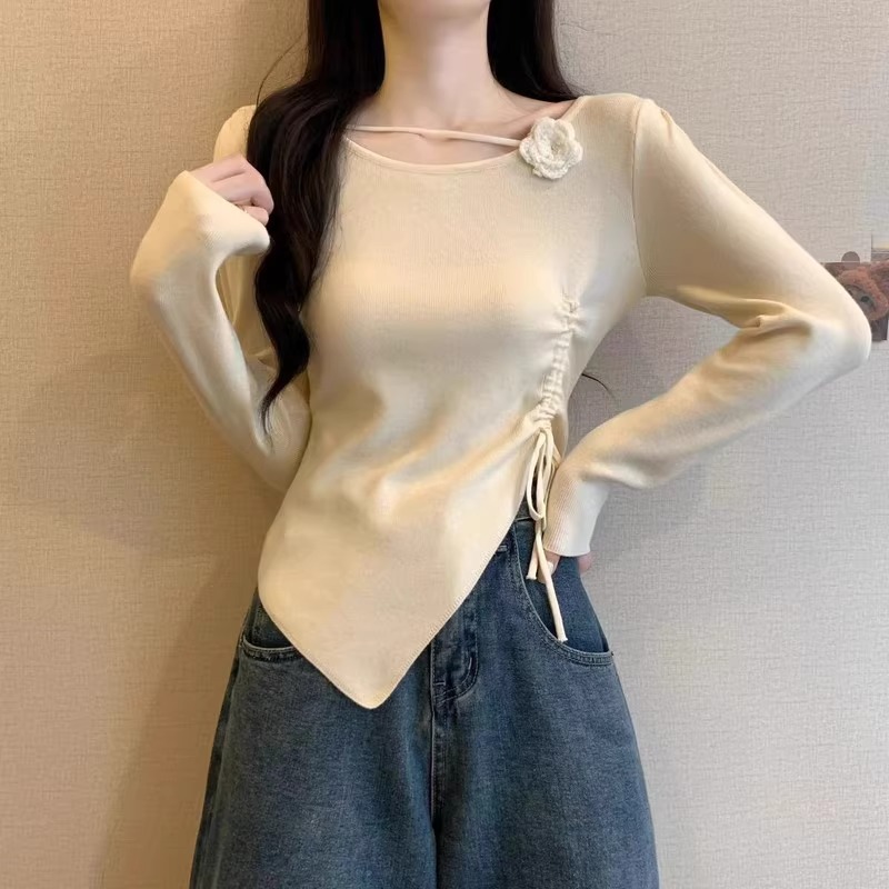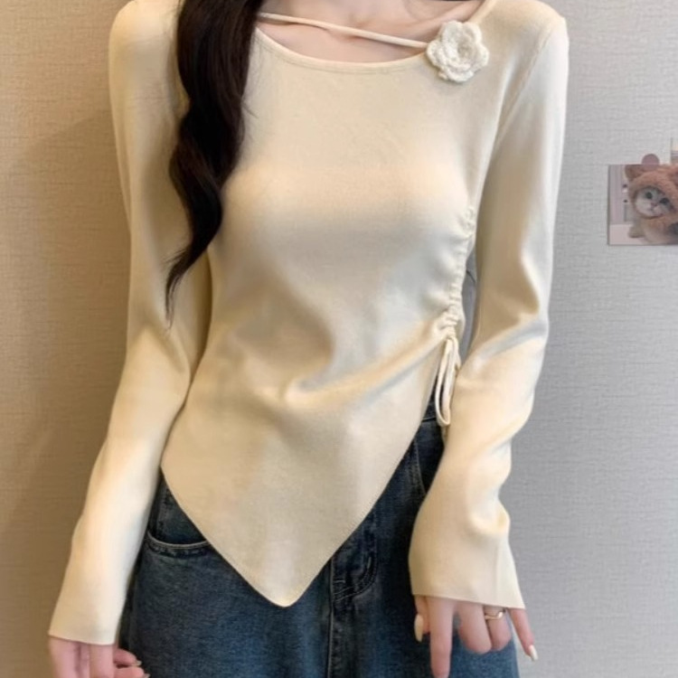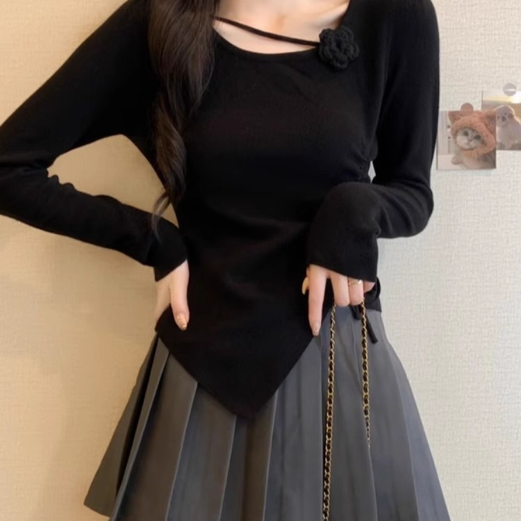 디자인 센스 틈새 불규칙한 슬림 쇼트 탑 여성의 가을과 겨울 2024 새로운 내베이스 니트 스웨터 스웨터스토어 가기
