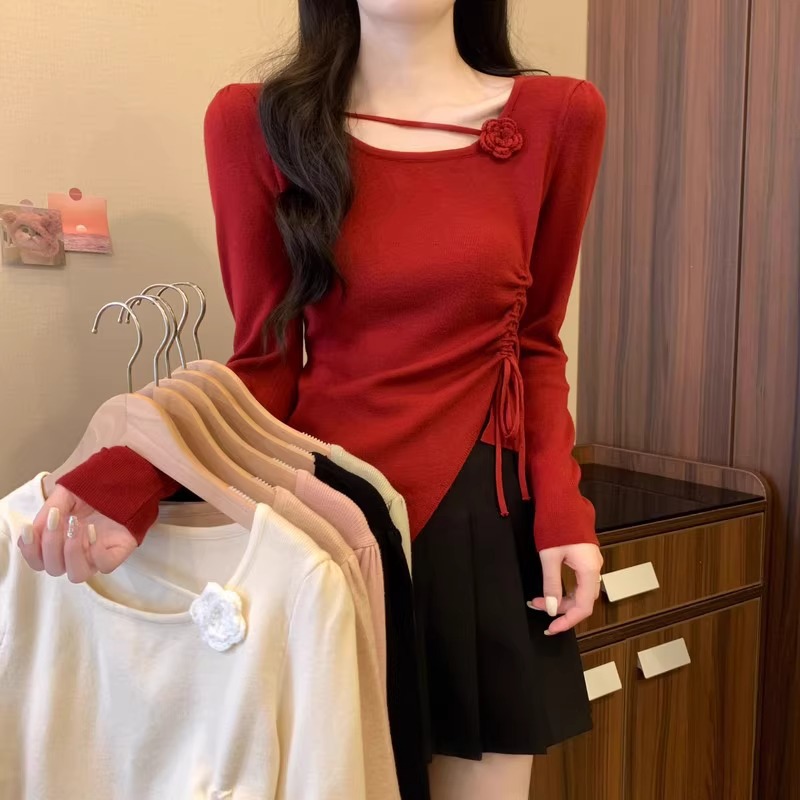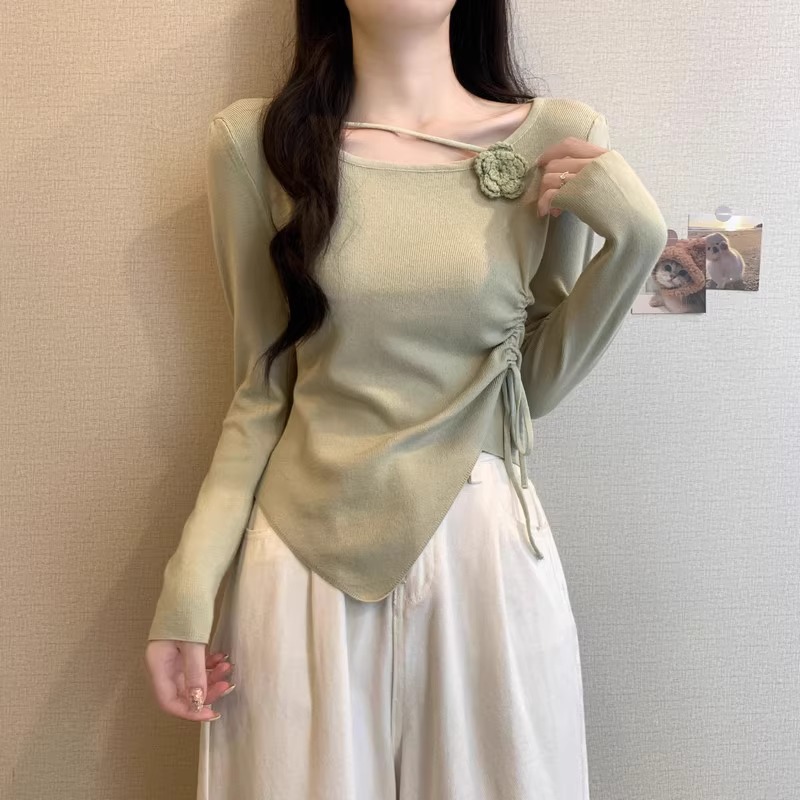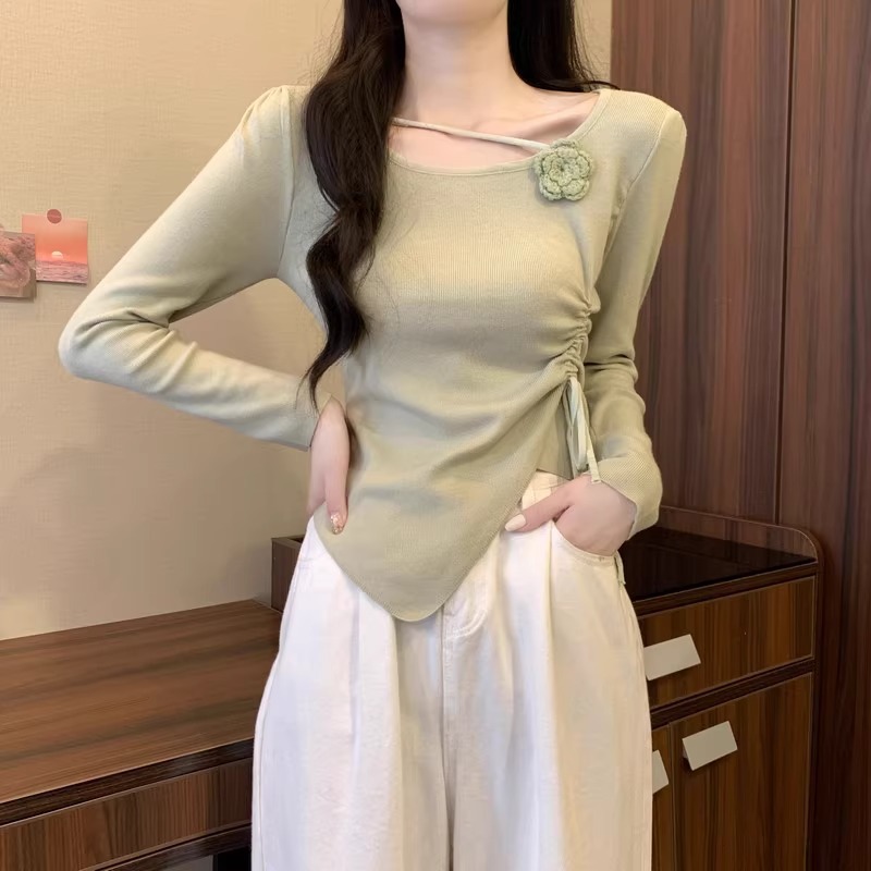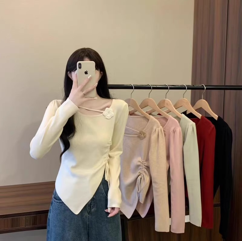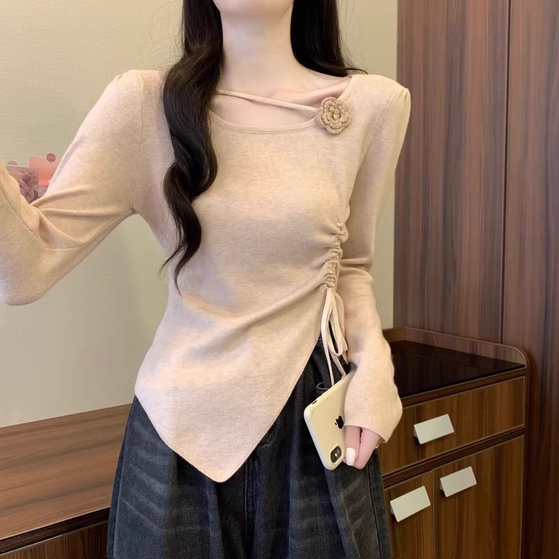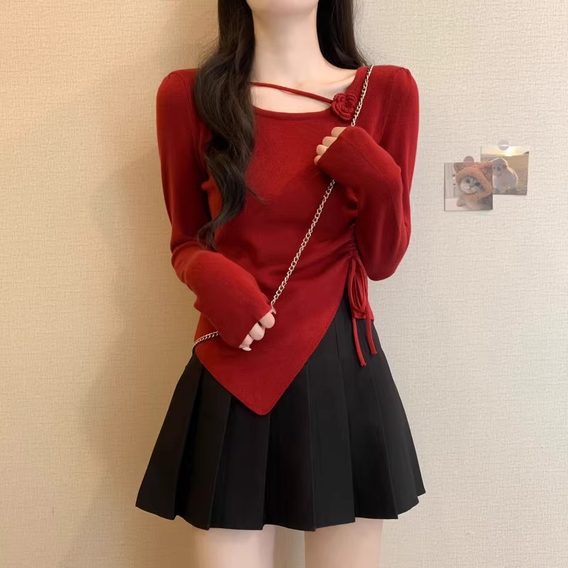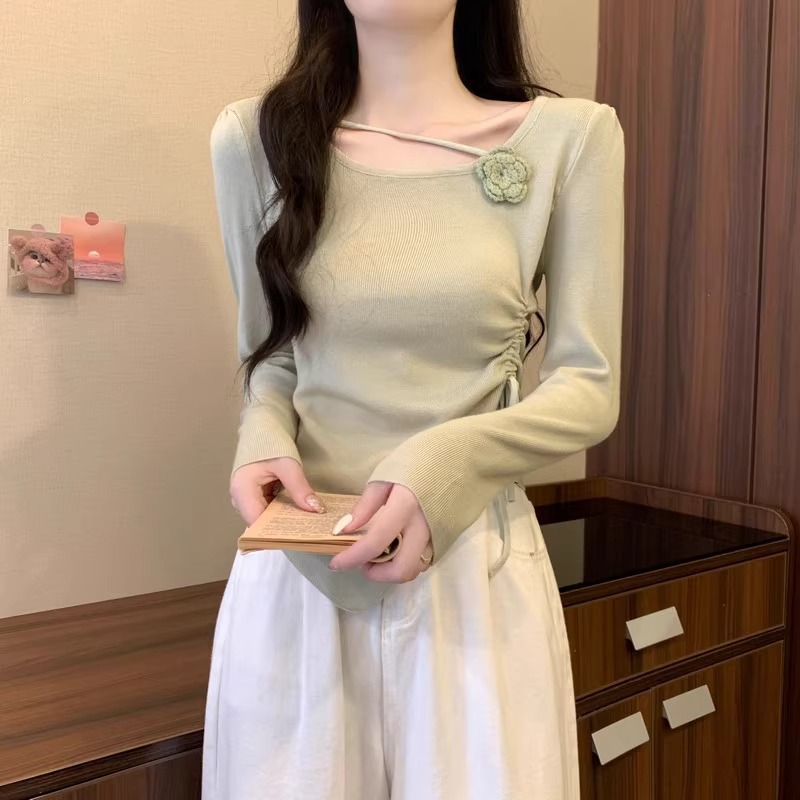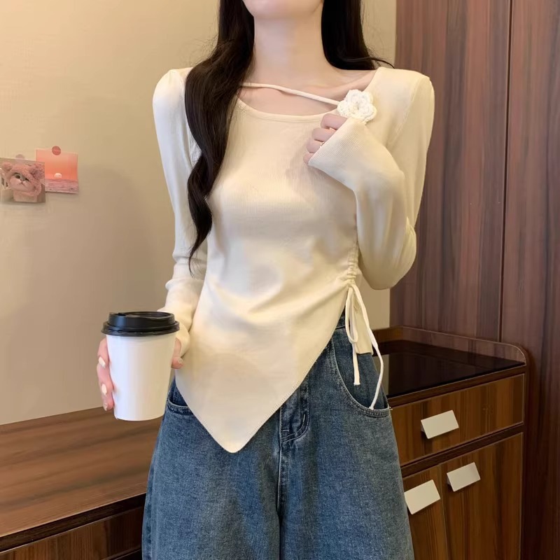 디자인 센스 틈새 불규칙한 슬림 쇼트 탑 여성의 가을과 겨울 2024 새로운 내베이스 니트 스웨터 스웨터스토어 가기