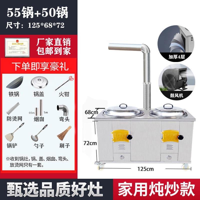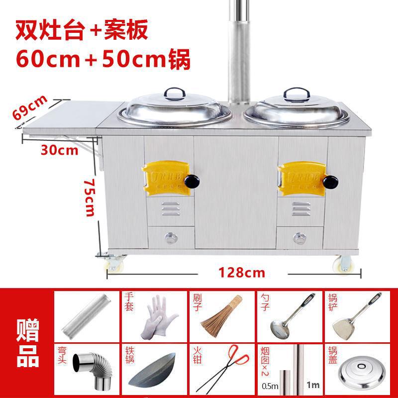 농촌 가정 장작 스토브 스테인레스 스틸 지구 스토브 야외 철 냄비 모바일 구식 대형 더블 냄비 스토브스토어 가기
