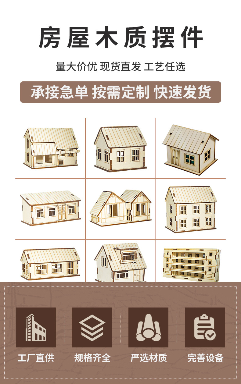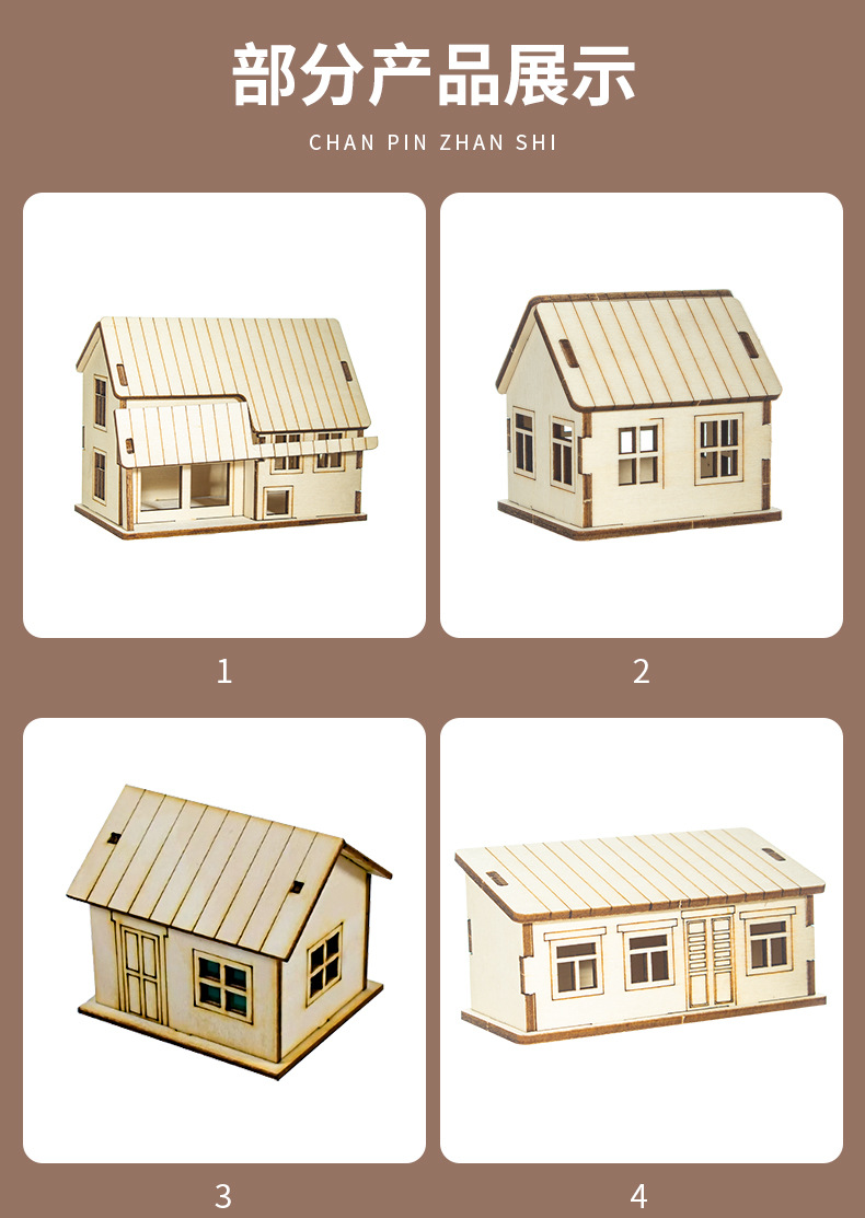 모래 테이블 건물 집 모델 건물 미세 장면 나무 공예 레이저 절단 조립 된 작은 집스토어 가기