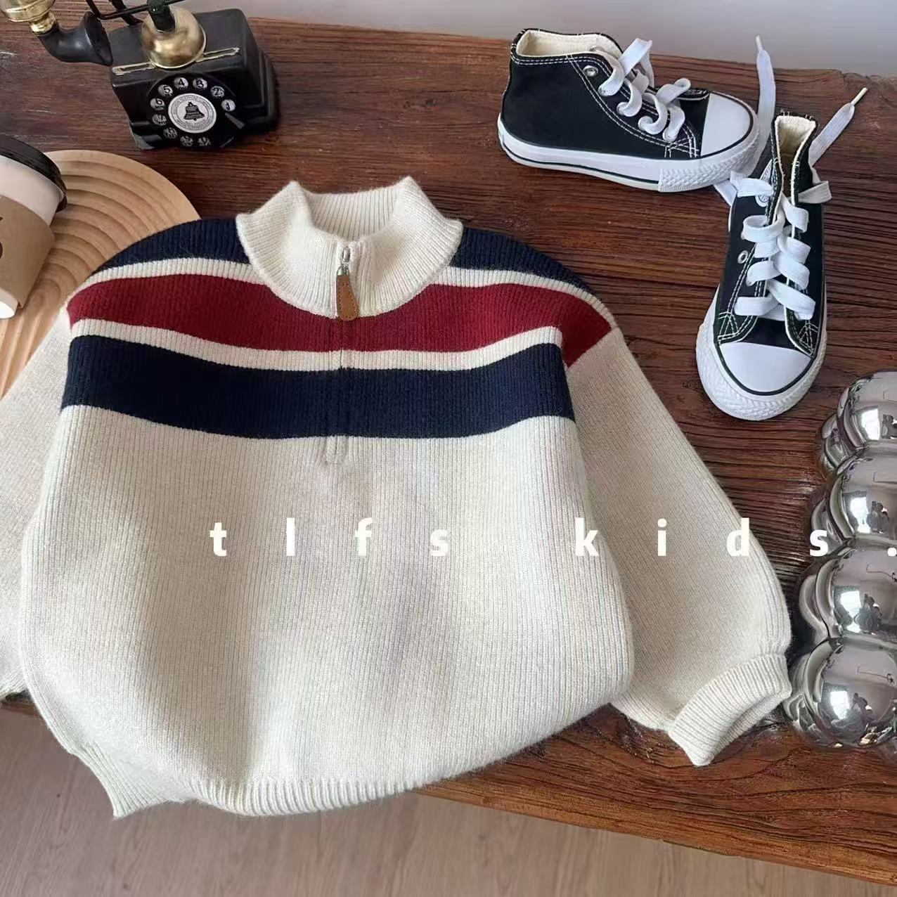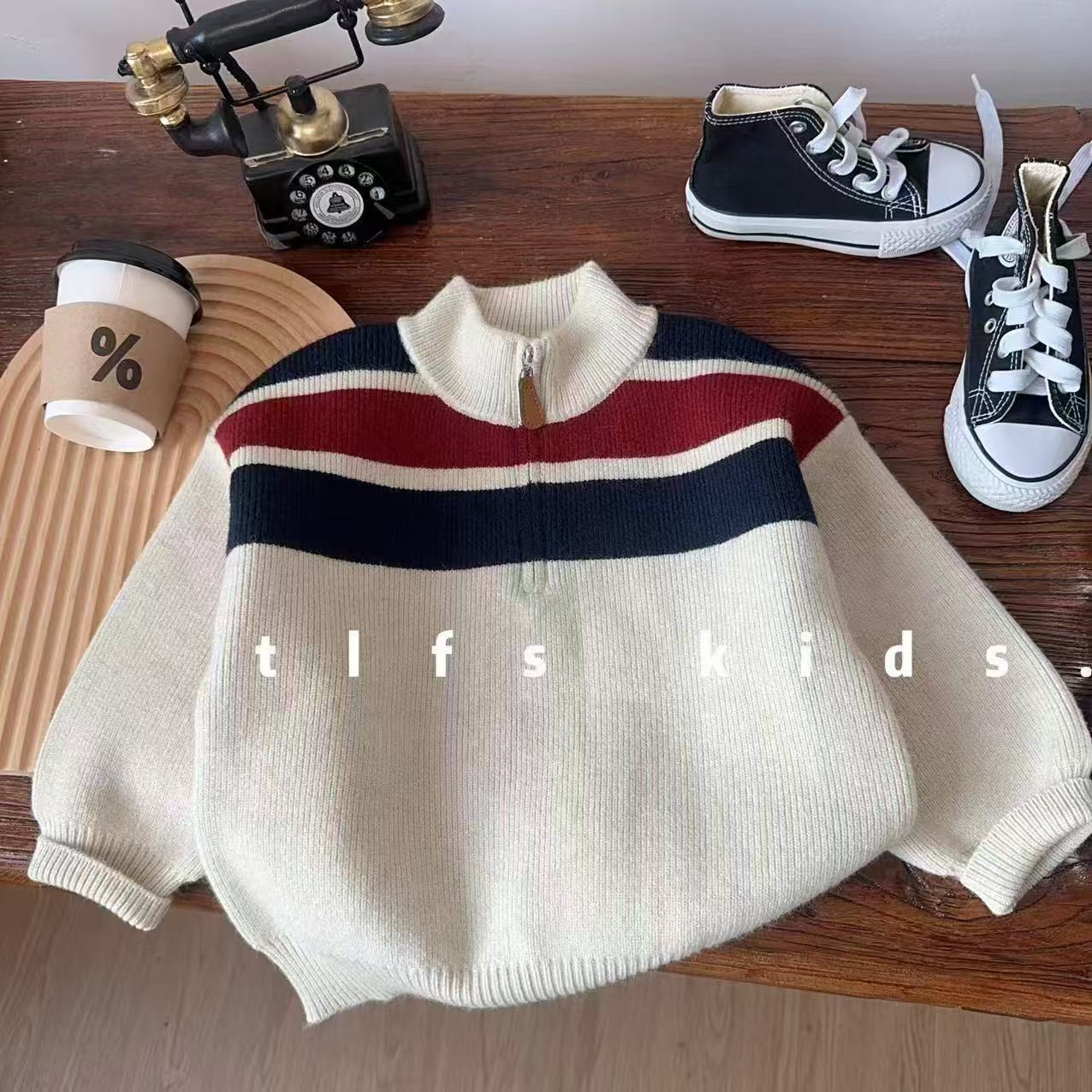2024 어린이 스웨터 스탠드 칼라 스웨터 가을과 겨울 두꺼운 부드러운 밀랍 외국 스타일 레저 스웨터 소년과 소녀 풀오버