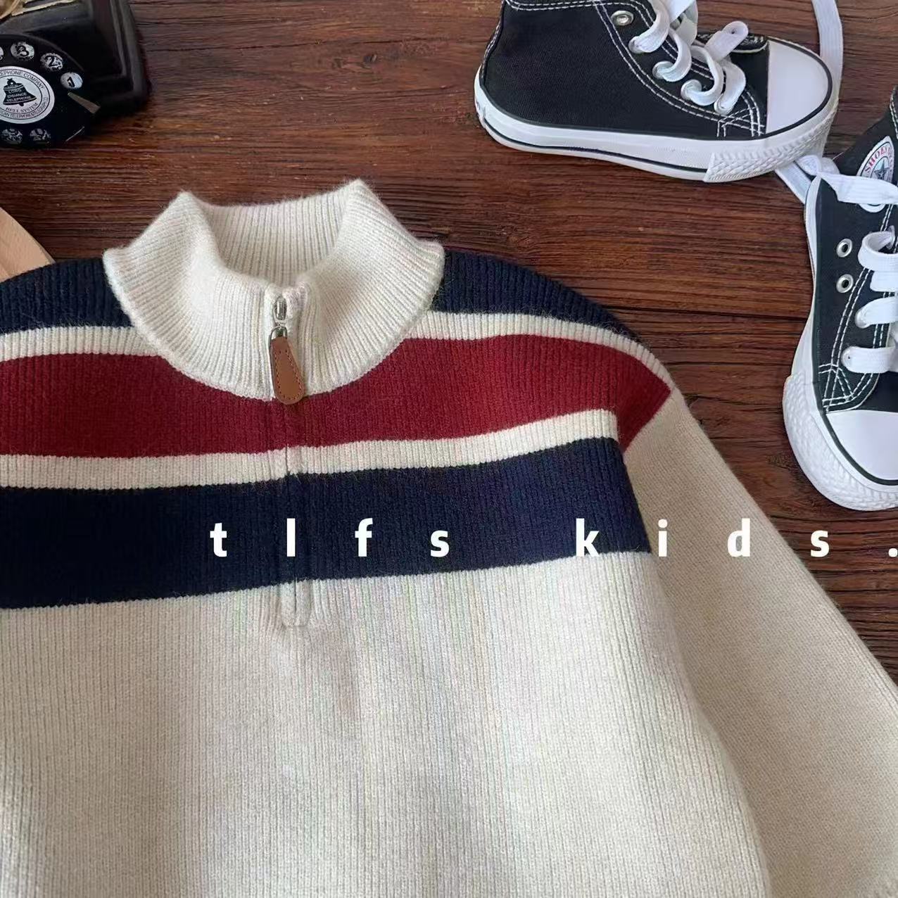 2024 어린이 스웨터 스탠드 칼라 스웨터 가을과 겨울 두꺼운 부드러운 밀랍 외국 스타일 레저 스웨터 소년과 소녀 풀오버스토어 가기