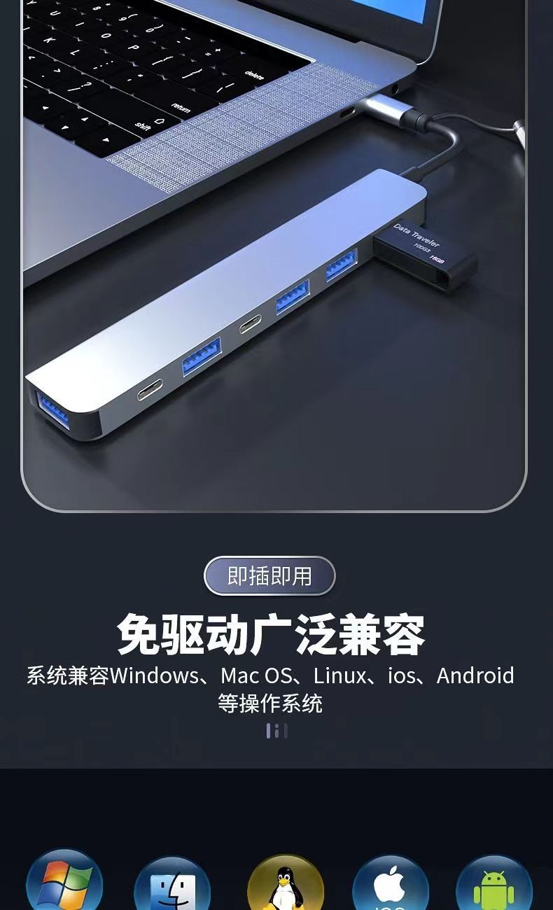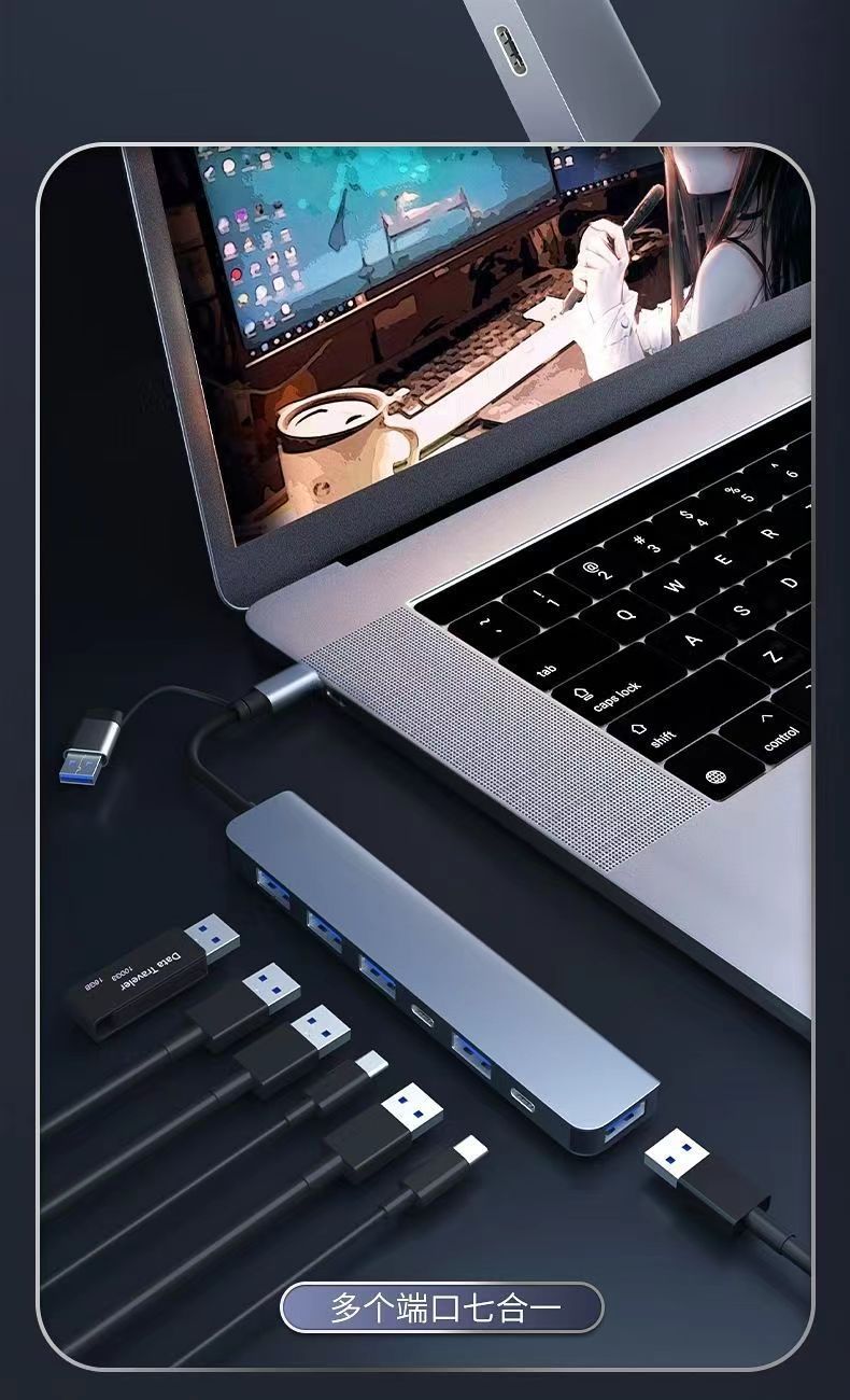 타입-C 듀얼 헤드 7-in-1 확장 도크 USB3.0 분배기 다기능 허브 컴퓨터 확장 알루미늄 합금스토어 가기