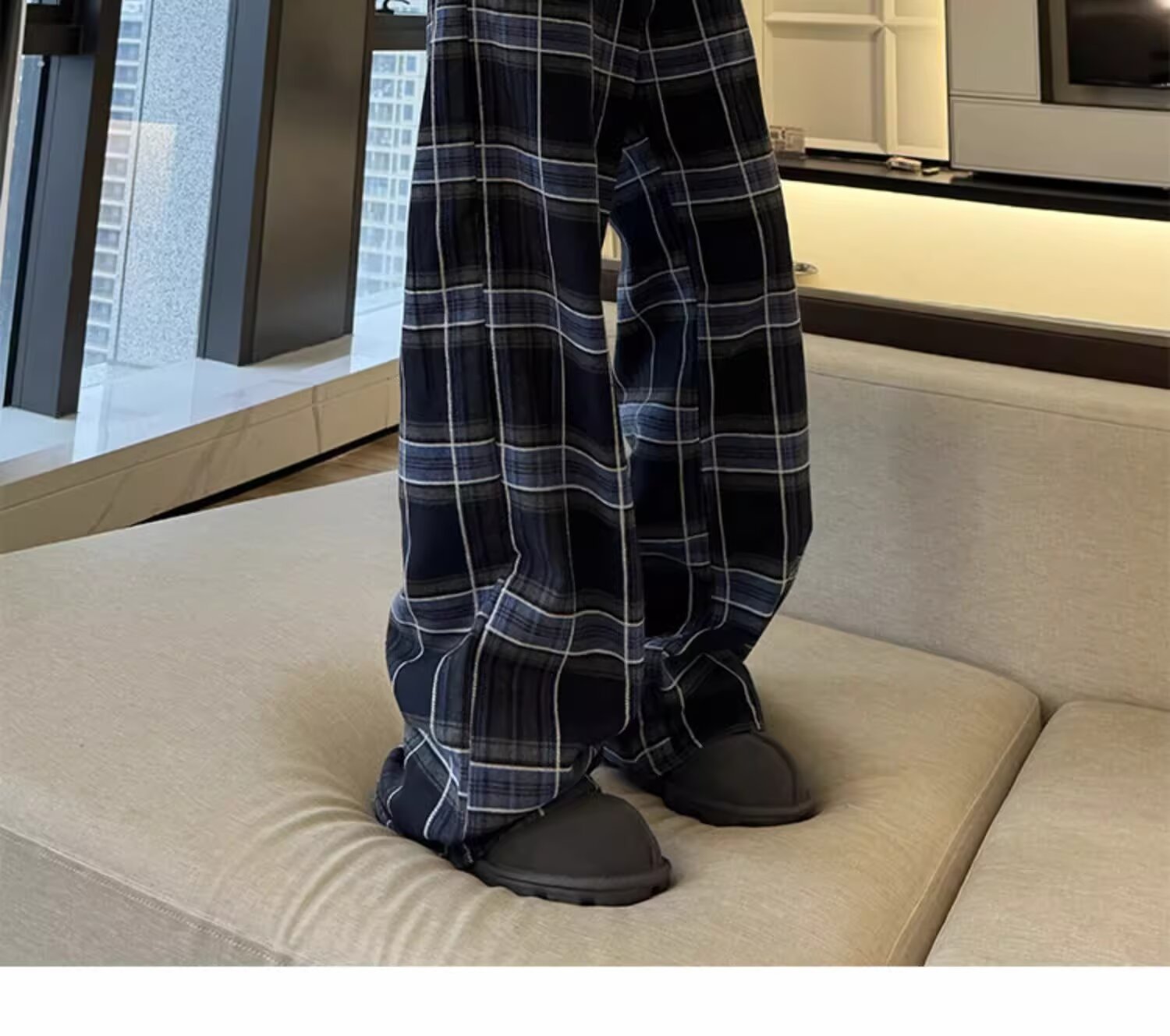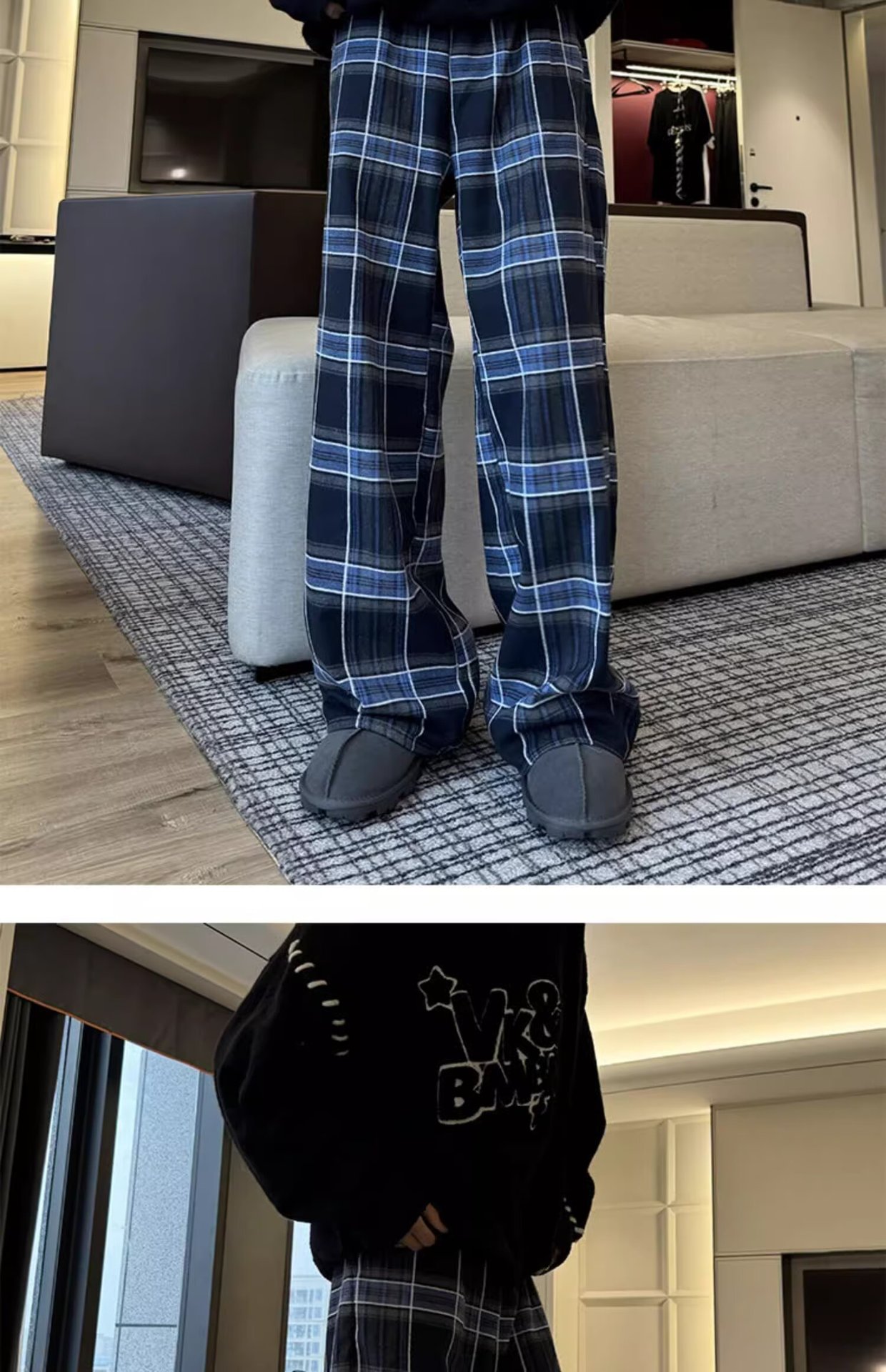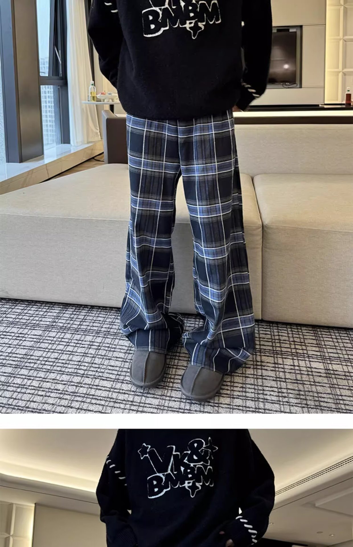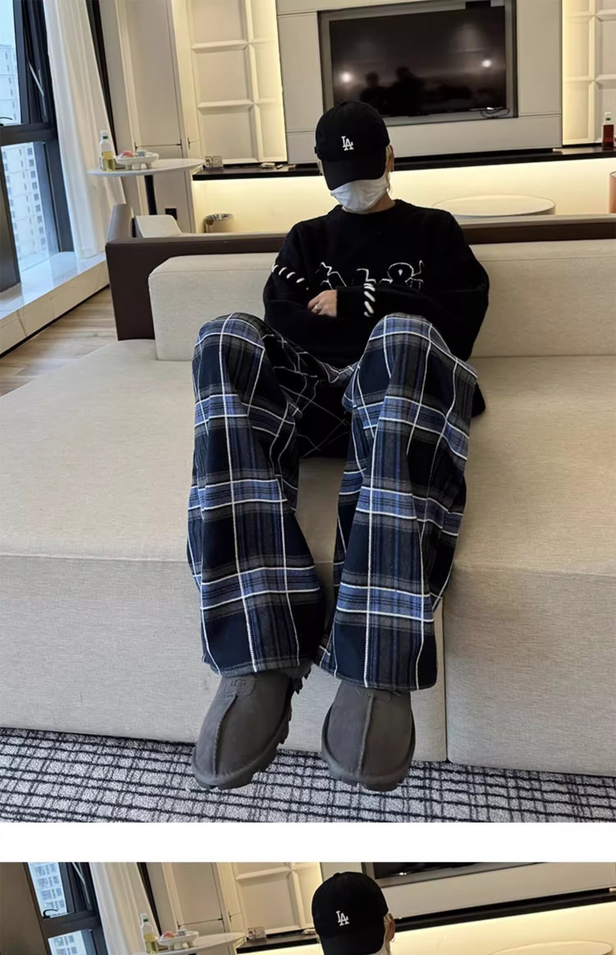 2025 새로운 도착 느슨한 캐주얼 바지 남자 한국 스타일 유행 올 매치 바지 더피 핸섬 격자 무늬 펜던트스토어 가기