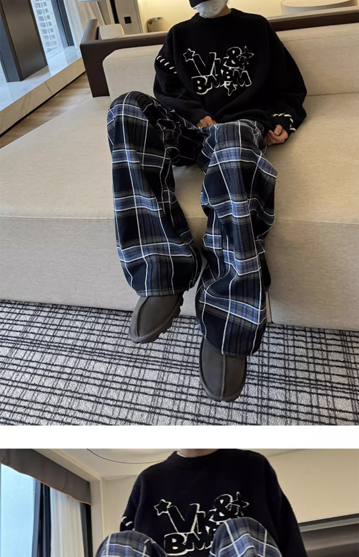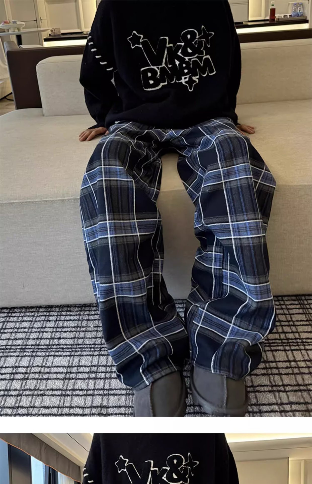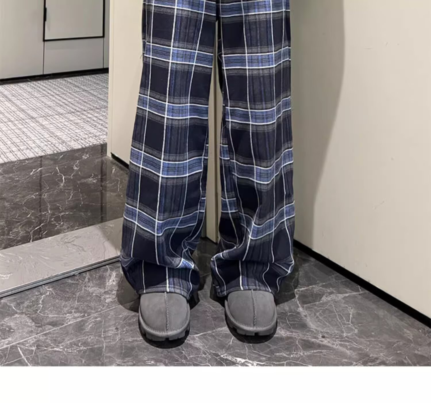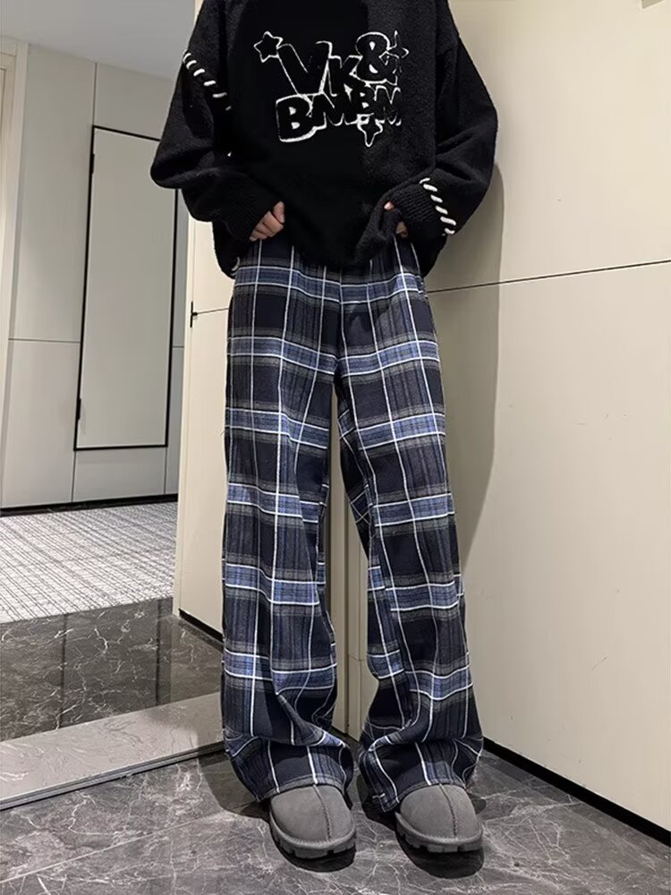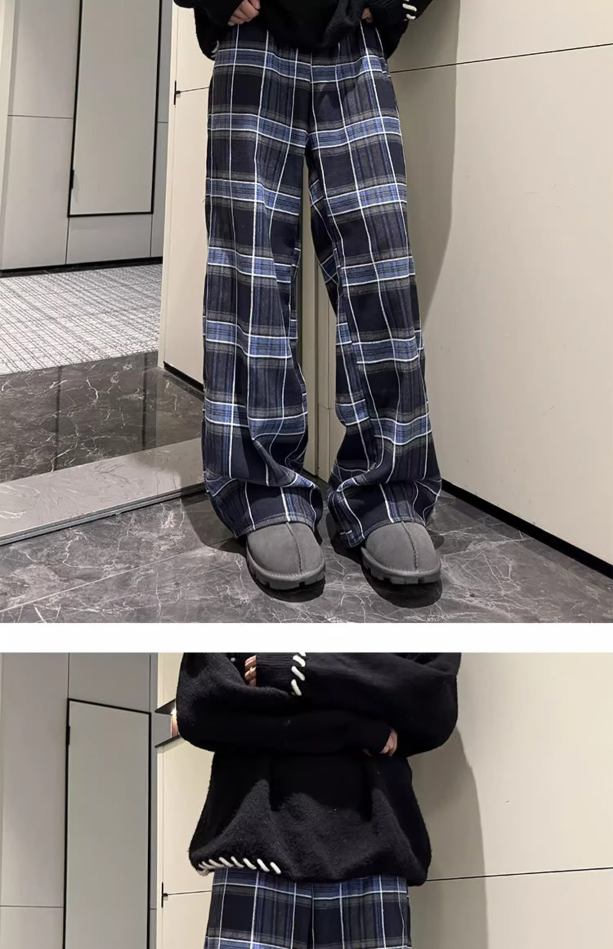 2025 새로운 도착 느슨한 캐주얼 바지 남자 한국 스타일 유행 올 매치 바지 더피 핸섬 격자 무늬 펜던트스토어 가기