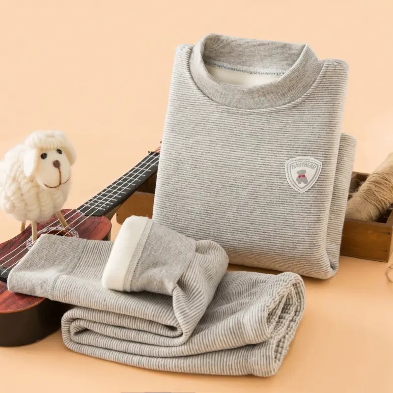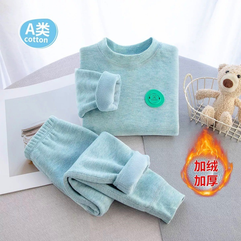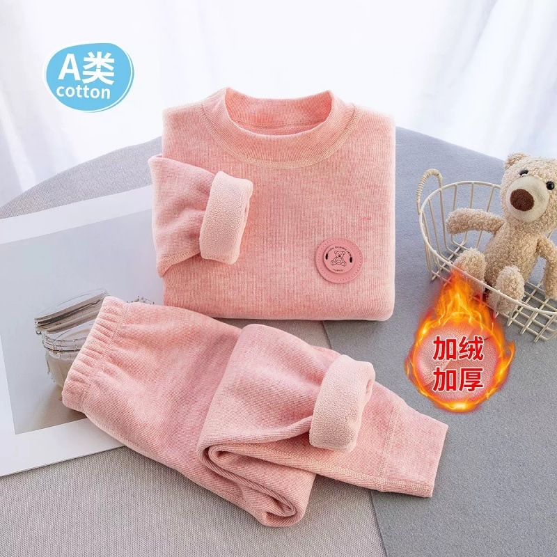 어린이 겨울 기모 두꺼운 열 속옷 소년 소녀 아기 젖병 세트 가을 옷과 바지