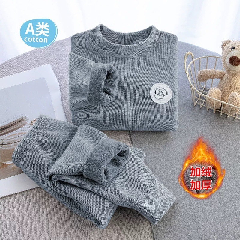 어린이 겨울 기모 두꺼운 열 속옷 소년 소녀 아기 젖병 세트 가을 옷과 바지스토어 가기